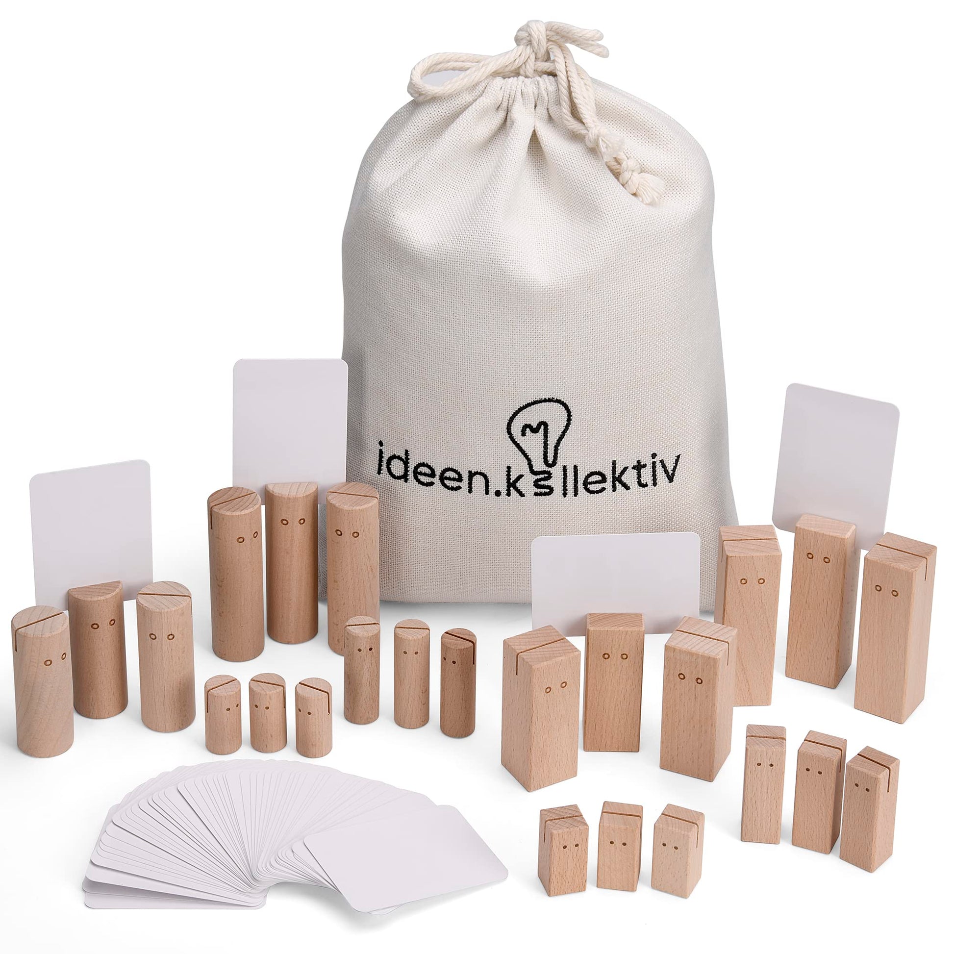 Individual systemic board figures - High-quality made from beech wood - Systemic figures for family board - Ideal for coaching placements supervision moderation (with card slot and cards)