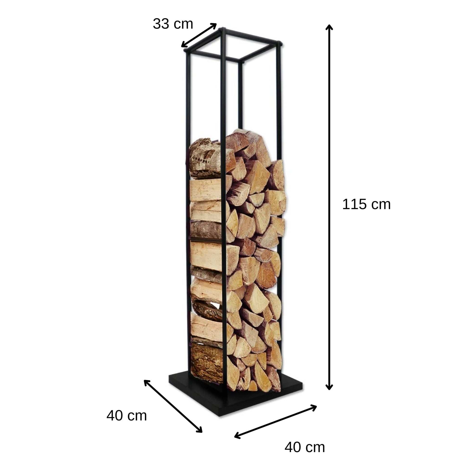 Indoor Heroes Minimalist Design Firewood Rack made of matte black painted metal Height 115 cm Firewood Shelf Firewood Stand Firewood Rack