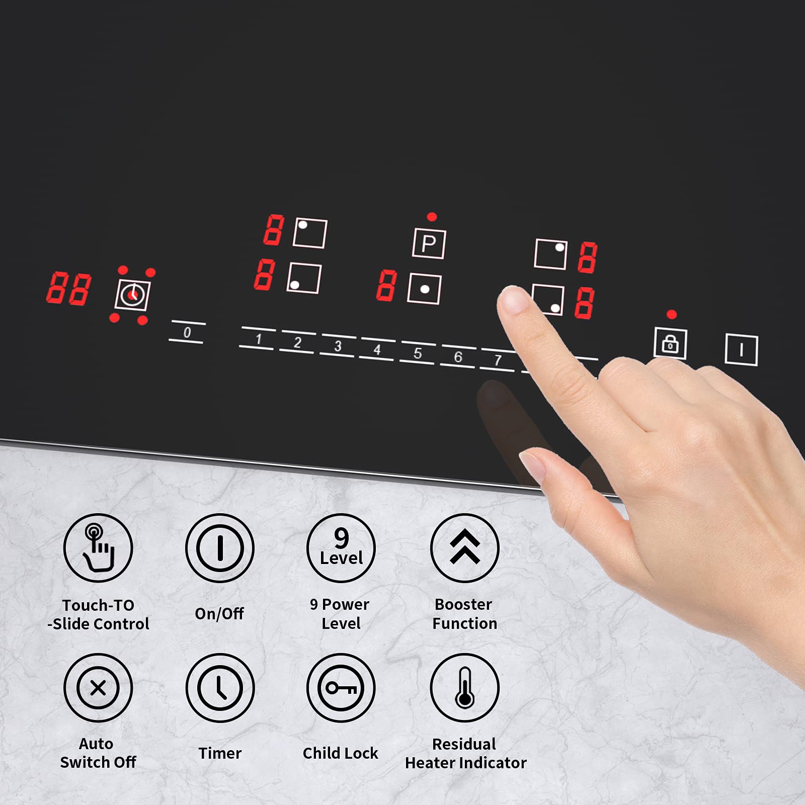 ["Excellent ability --- The induction hob is equipped with 5 high-performance cooking zones with 1800 W + 1200 W + 2000 W + 1200 W + 1500 W. It heats up almost instantly, you don't have to wait for heating time.","Multiple functions --- The IsEasy 90cm induction hob is a good partner for cooking. The timer from 1-99 minutes makes cooking a pleasant leisure activity. It also has residual heat indicator and child lock.","Widely Used --- The 90cm ceramic hob is suitable for pans made of iron, stainless steel, and alloy. You can use the induction hob for built-in installation.","Easy to maintain --- The frameless 5-zone induction hob surface is made of tempered glass and is easy to clean. Maximum rated power: 8600W, 220-240V. Product size: 90 * 52 * 6.9 cm. Cutout size: 87 * 49.5 cm.","Safe --- The 5-zone induction hob features overheat protection, which automatically shuts off the induction hob when its temperature exceeds the safety value, and a hot surface warning indicator displaying an \"H\" as long as the surface is still hot."]