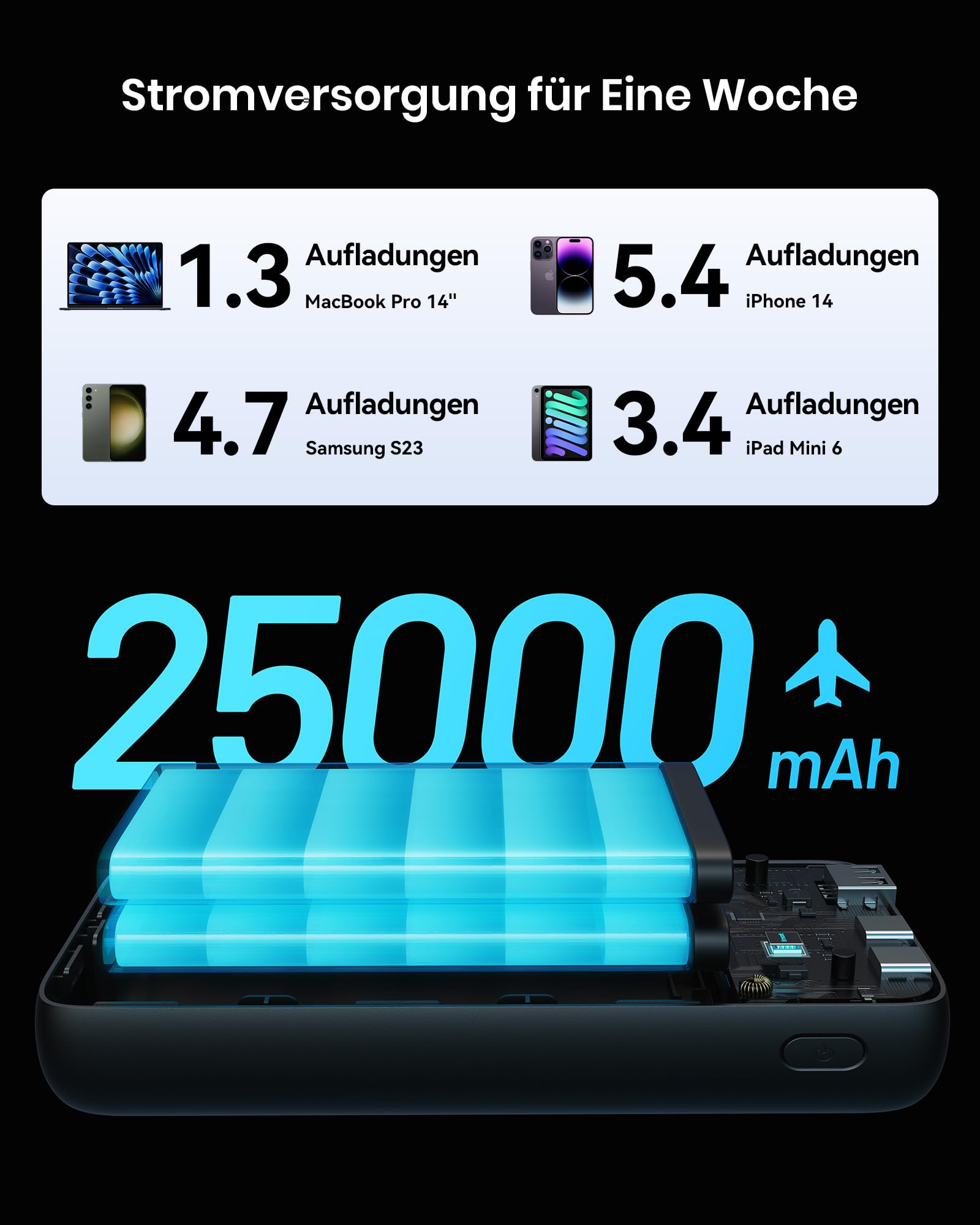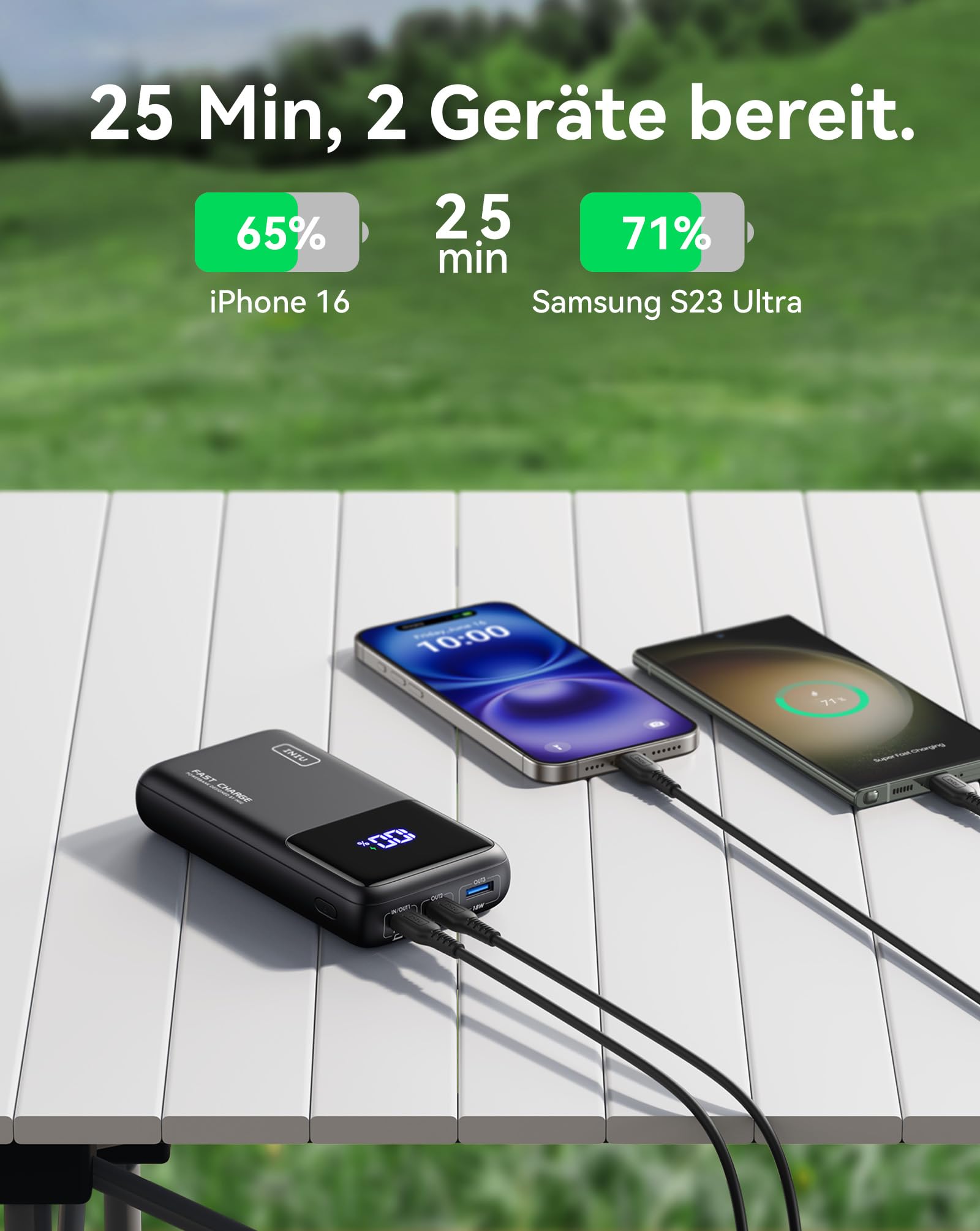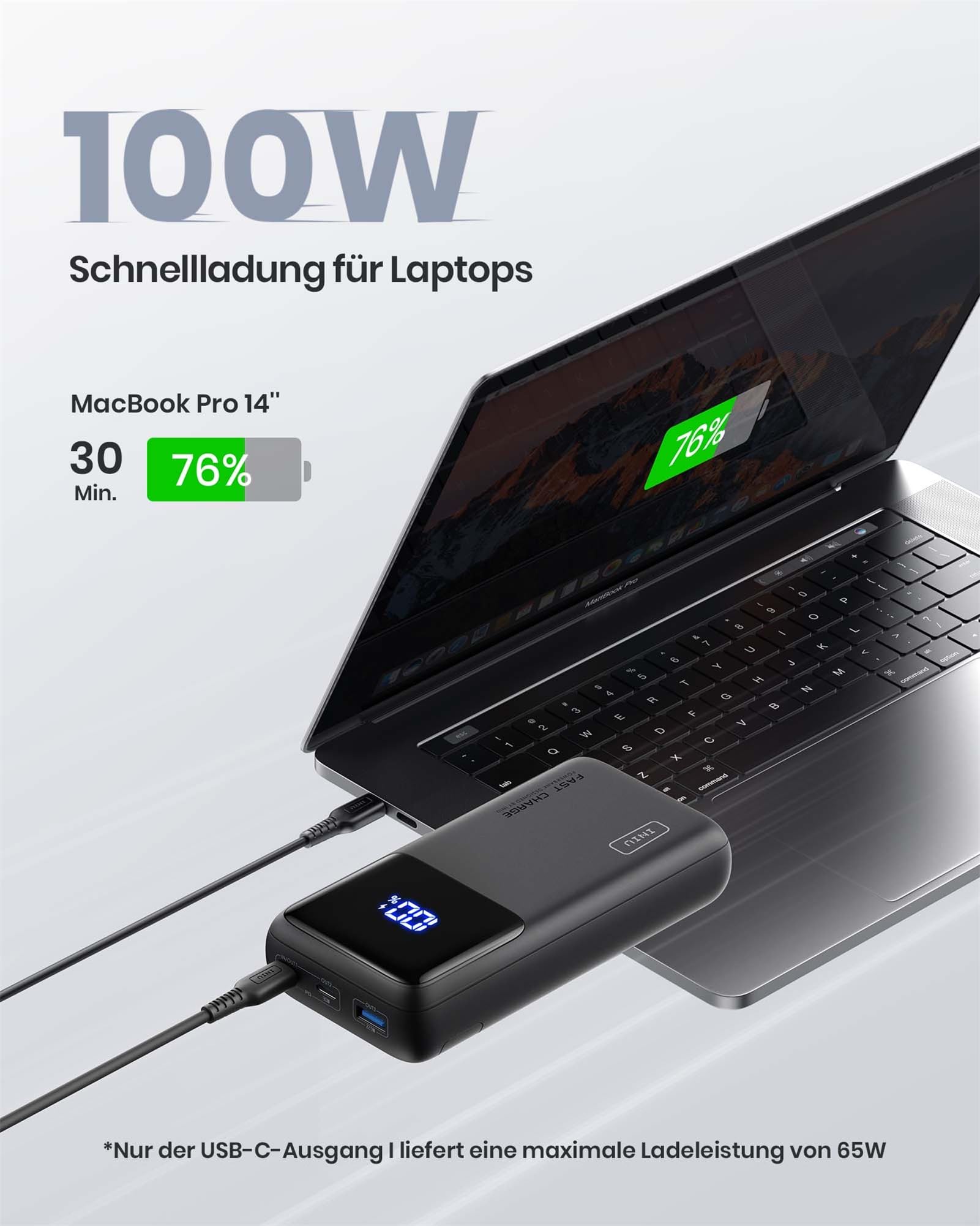 ["From INIU - the professionals for safe fast charging: Enjoy the safest charging experience with over 38 million users worldwide. At INIU, we only use high-quality materials, which is why we can offer an industry-leading 3-year warranty.","100W Tip Laptop Charging: Enhance your charging experience with our innovative power bank. Optimized to deliver an incredible 100W power, it provides lightning-fast charging for high-end laptops, allowing you to stay productive without being tied to an outlet.","USB-C In & Out Convenience: The USB-C IN&OUT port not only efficiently powers your devices with 100W of power, but also rapidly charges the power bank itself with 65W of high-speed input power, simplifying your charging set-up.","Dual USB-C Outputs for Versatility: With two USB-C output ports, you can easily adapt to various charging needs. From the latest smartphones and tablets to laptops and other USB-C devices, this power bank covers them all, making it a versatile companion for work and leisure.","Full Speed Charging for Steam Deck: Take your gaming sessions to the next level with the ability to charge your Steam Deck gaming console at full speed. Whether you're on the go or at a friend's house, continue your gaming adventures without compromise.","Ready for Air Travel: 25,000mAh Capacity: Stay powered up on your travels with a large 25,000mAh battery capacity. It provides multiple charges for devices and is suitable for air travel, making long flights and transits a breeze.","What You Get: INIU 100W*1 Power Bank, 1 ft/0.3m USB C to USB C*1 Cable, User Manual*1, Travel Case*1, INIU's industry-leading 3-year warranty and lifelong technical support."]