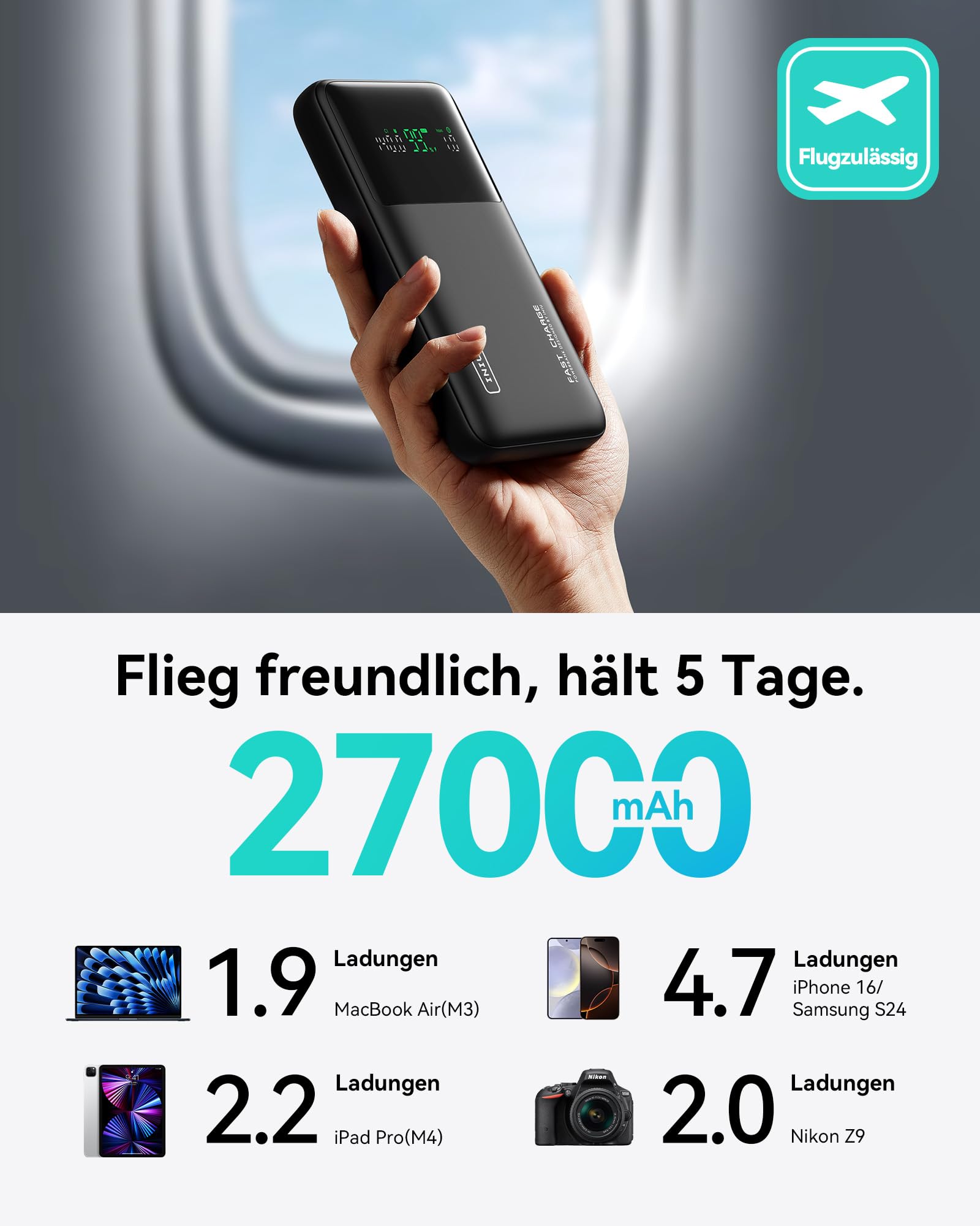 INIU Power Bank, 27000mAh 140W Power Bank Small But Powerful USB C Input & Output for Phone & Laptop, External Battery Packs for MacBook Pro Steam Deck iPhone 17 16 15 14 13 12 Pro Samsung S23 iPad etc.