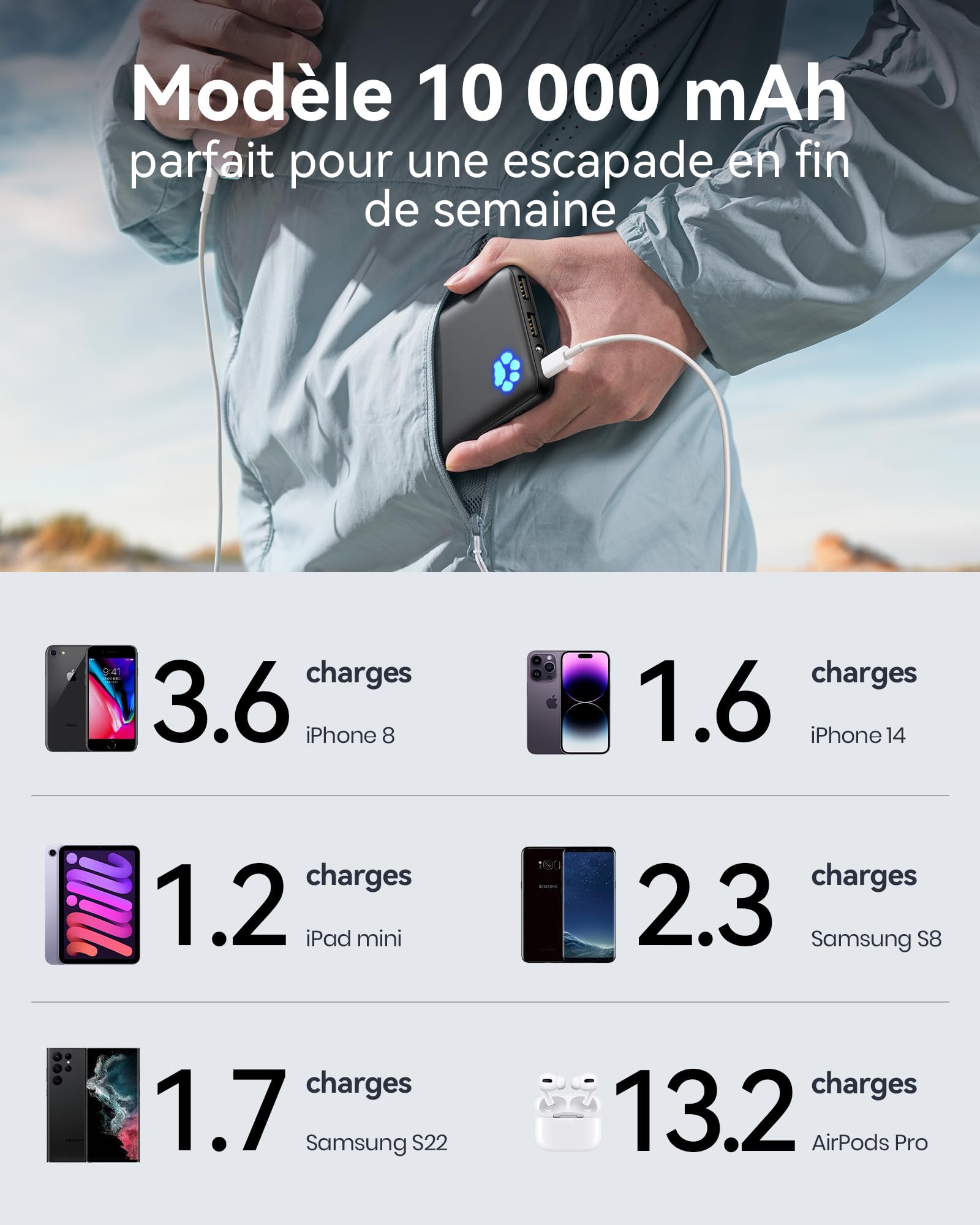 ["INIU - The SAFEST Pro for Fast Charging: Experience the safest charging with over 38 million users worldwide. At INIU, we only use the highest quality materials. That's why we are confident in offering industry-leading 3-year iNiu Care.","Super Thin 10000mAh: The thinnest 10000mAh power bank on the market, easily fitting into any pocket. Enjoy days of charging capacity, able to charge your iPhone 8 3.6 times, your Samsung S8 2.3 times, or your iPad Air once.","2024 Version USB-C Input & Output: Unlike most chargers that only have a USB-C input, the INIU 3A High-Speed PowerPaw features both a USB-C input and output, making it perfect for your new iPhone, iPad, and all future USB-C devices.","3A Faster Charging Saves You 45 Minutes: With fast 3A charging, your iPhone can be charged up to 78% in just one hour, much more than the 42% of 2.1A in the same time. Faster 3A charging speed frees you from cable clutter sooner!","Even Greater Compatibility: Unlike most power banks that can't charge devices with low power consumption, the portable charger from INIU works not only with all phones and tablets, but also with smaller devices like AirPods, Bluetooth headphones, fitness trackers, smartwatches, etc.","What You Get: INIU Portable Charger (10000mAh) x 1, USB-A to USB-C Cable x 1 (0.3m), Storage Bag x 1, User Manual x 1, from INIU as well as lifetime technical support."]