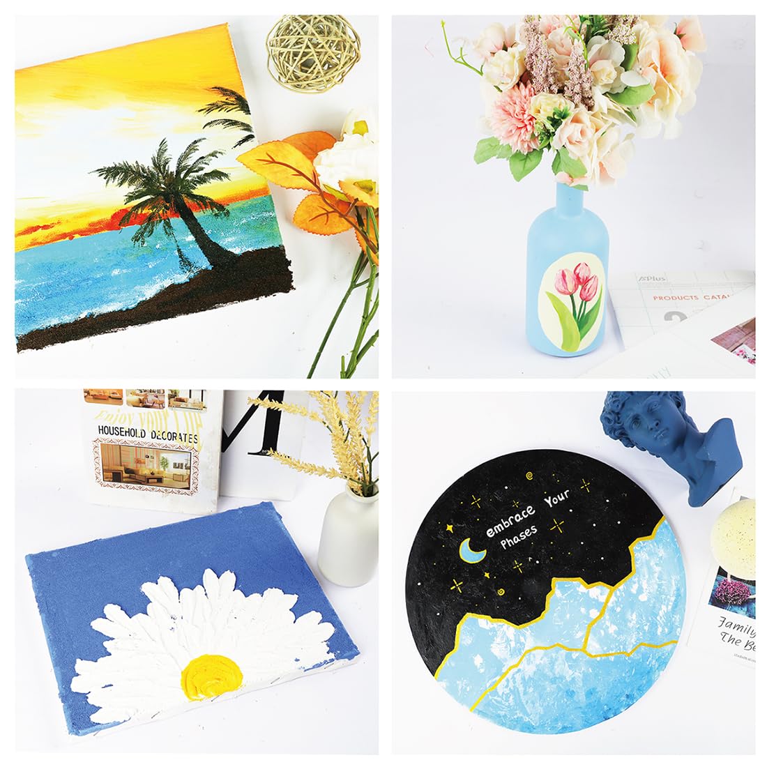 ["Environmentally friendly and non-toxic - The acrylic paint set is made from environmentally friendly paint material and complies with ASTM D-4236. It is rich in pigments, creamy, non-toxic, and safe for adults, teenagers, and children","Vibrant colors and rich pigments - The premium acrylic paint set with 24 unique, eye-catching, vibrant acrylic colors offers you vibrant colors and a better selection to bring your artwork to life. These highly pigmented colors are great for achieving real, consistent color tones. Ideal for professional artists, young aspiring artists, painters, and children","Beautiful color blending - INKLAB acrylic paints can be mixed, layered, and blended well to create a range of unlimited color tones for all craft projects. Each color has a fantastic thick consistency for art paintings that holds brush or palette knife marks well and gives your art masterpieces a brilliant texture","Multipurpose acrylic paint set - No need for additional colors. Acrylic paints are versatile for canvas art, painting, scrapbooking, and even nail art. They are suitable for most surfaces, including canvas, wood, glass, card decoration, plastic, craft foam, ceramic, decorative wallpaper, terracotta, chalkboard easel, paper, and metal","Easy to use and store - The acrylic paint in flip-top squeeze bottles makes it easy to control the flow when applying the paint to the art painting. Comes in a sturdy, beautiful cardboard box with a flip lid. The color set is easy to store and safe to keep"]