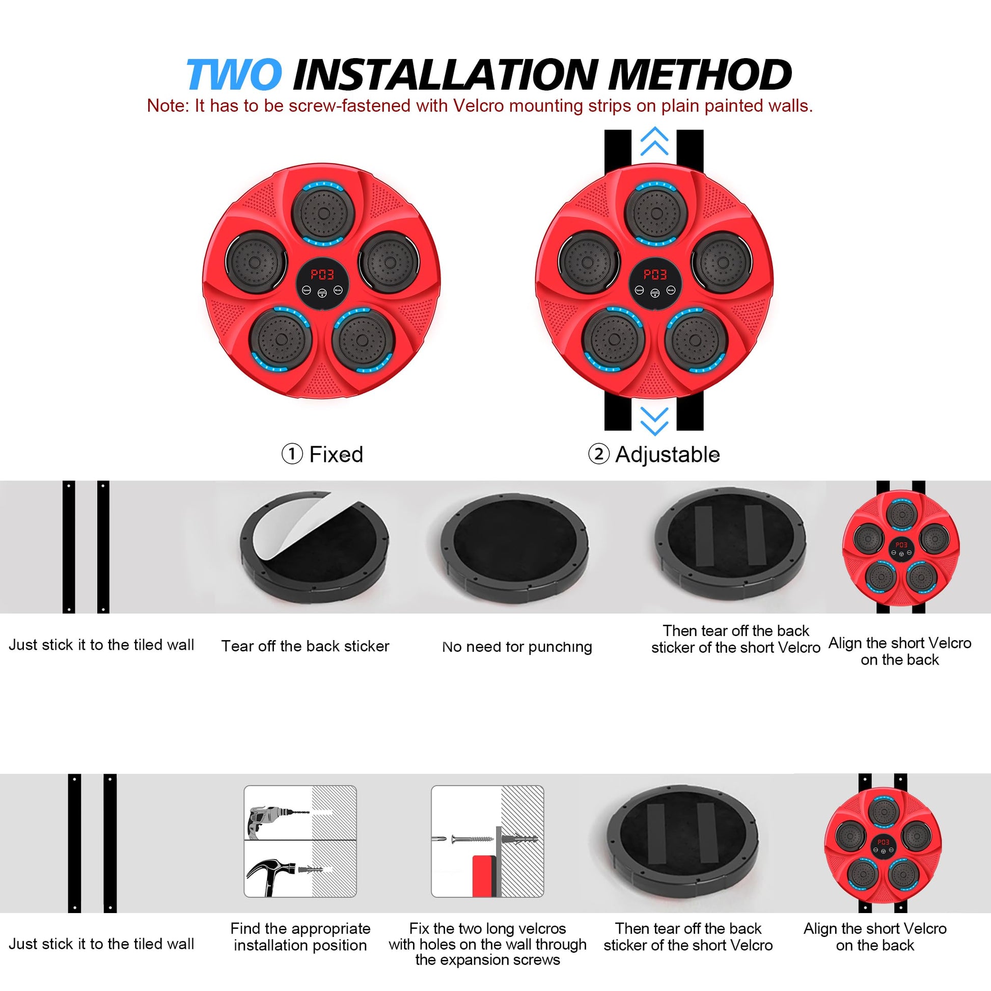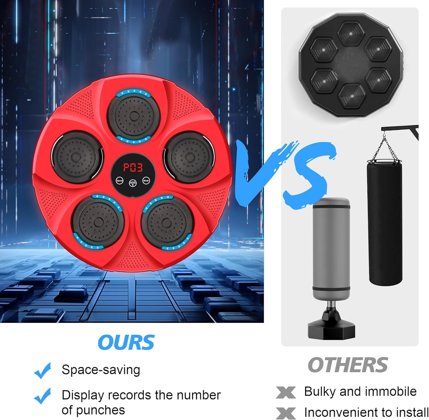 INMORVEN Music Box Machine, Punching Bag Kids Wall Mount for Boxing Equipment 15.7 Inches, Smart Electronic for Home, Focus Agility Training for Kids and Adults (Red)