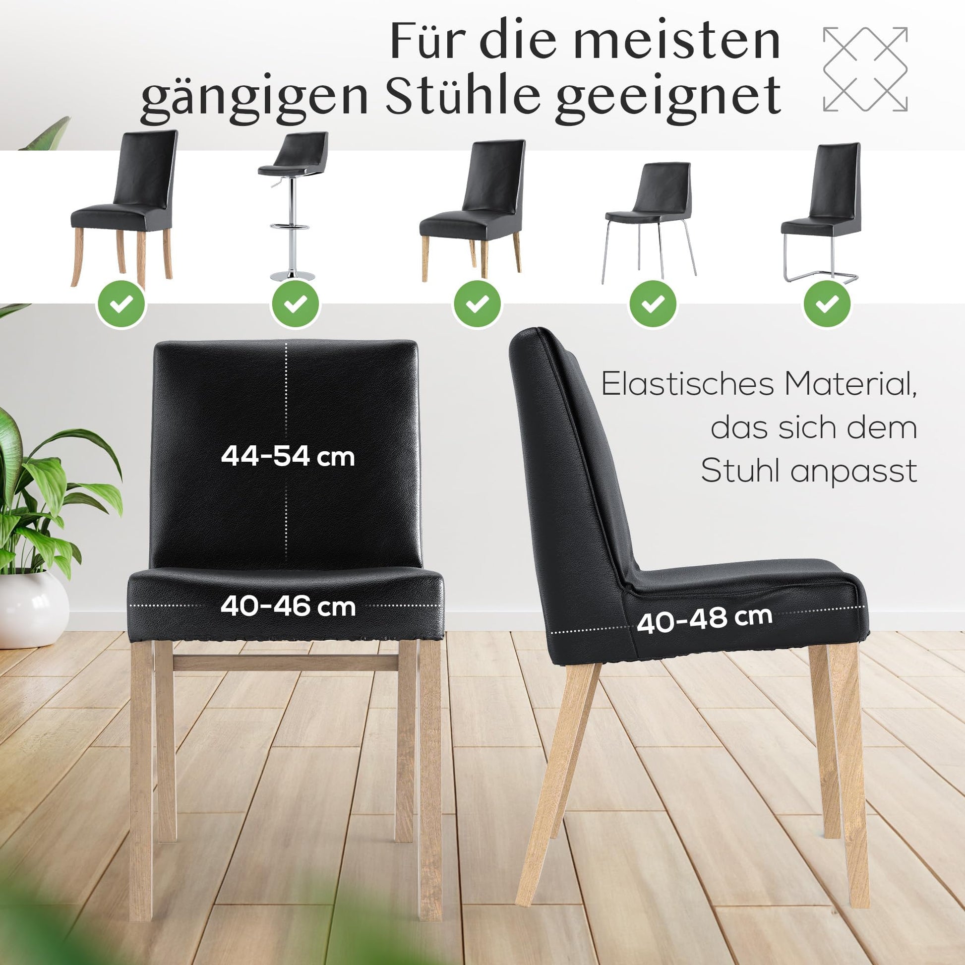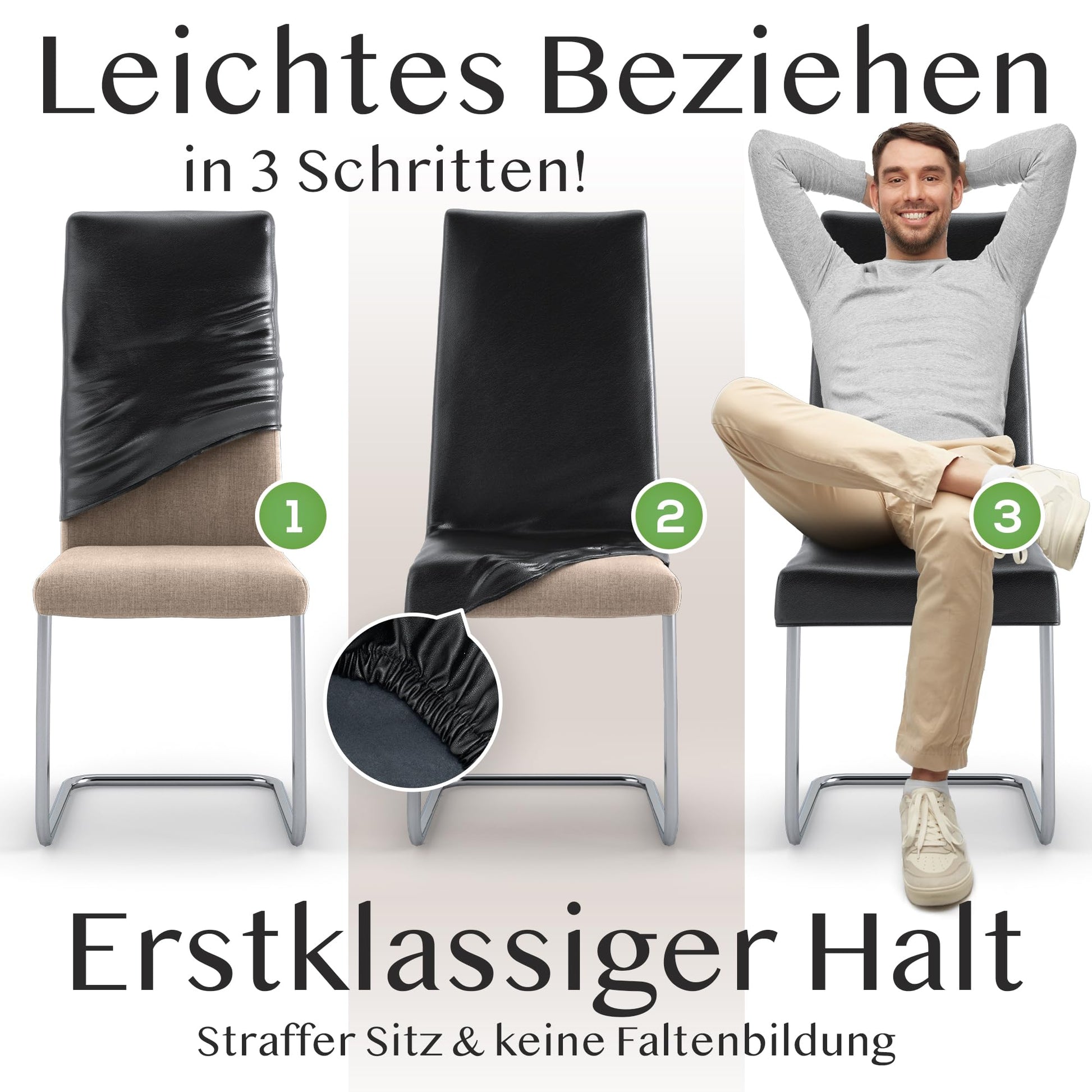 ["No one wants that! That's why choose Innerspace chair covers, which are thicker, more durable, and more opaque than other chair covers and even withstand pets and children.","Unsure if the cover fits the chair? Don't worry! Our chair covers are suitable for most conventional chairs and adapt to your chair shape thanks to elastic material.","Wisdom and wit... Other chair covers soak up with water, wine, or sauces and have to be cleaned elaborately. Spare yourself this stress and simply wipe off liquids and dirt thanks to the unique Drip-Down Oberfläche.","The finding word is comfort! Thanks to soft artificial leather, you will still be comfortable in the chair after hours. Perfect for the next game night with friends or the next family meal at your home.",""ICH KANN ES KAUM GLAUBEN"... Our numerous satisfied customers swear by Innerspace chair covers and are thrilled by the durability and timeless design. Experience for yourself how your chairs shine in new splendor with our covers – Just fantastic!"]