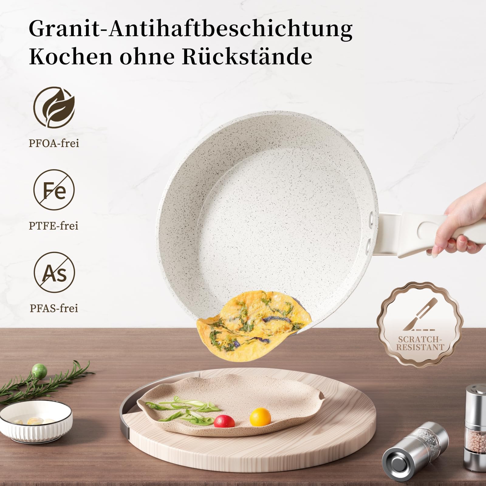 ["Package includes: 1 x 28 cm frying pan, user manual. The frying pan is made of high-quality aluminum, has a diameter of 11 inches, and a depth of 2.2 inches - ideal for frying, stewing, and serving. The pan body is equipped with a heat-insulating handle in an elegant wooden design, approximately 8 inches long, which is comfortable to hold and ensures a secure grip", "Three-layer casting process: Innerwell uses a special three-layer die-casting process for the pan bottom, which ensures exceptional flatness and durability. This guarantees optimal and uniform heat distribution. The frying pan is suitable for all types of stoves - including induction cookers, ceramic, gas, and electric stoves - and even oven-safe", "Non-stick coating prevents burning: The Innerwell frying pan has a high-quality granite non-stick coating, ideal for healthy and low-fat frying - without burning. The pan coating is 100% free of PFOA, lead, and cadmium, ensuring a safe and healthy cooking experience", "For effortless cooking: Despite the high-quality materials, the pan body is pleasantly lightweight and comfortable to hold - ideal for easy everyday cooking. After use, the pan can be easily cleaned with a sponge and warm soapy water (hand washing is recommended to protect the non-stick coating). There you go - clean in seconds!", "Beautifully packaged: Innerwell provides high-quality packaging for each pan - ensuring that your product arrives in perfect condition and is also ideal for gifting. Customer satisfaction is a top priority at Innerwell. Do not hesitate to contact us with any questions"]