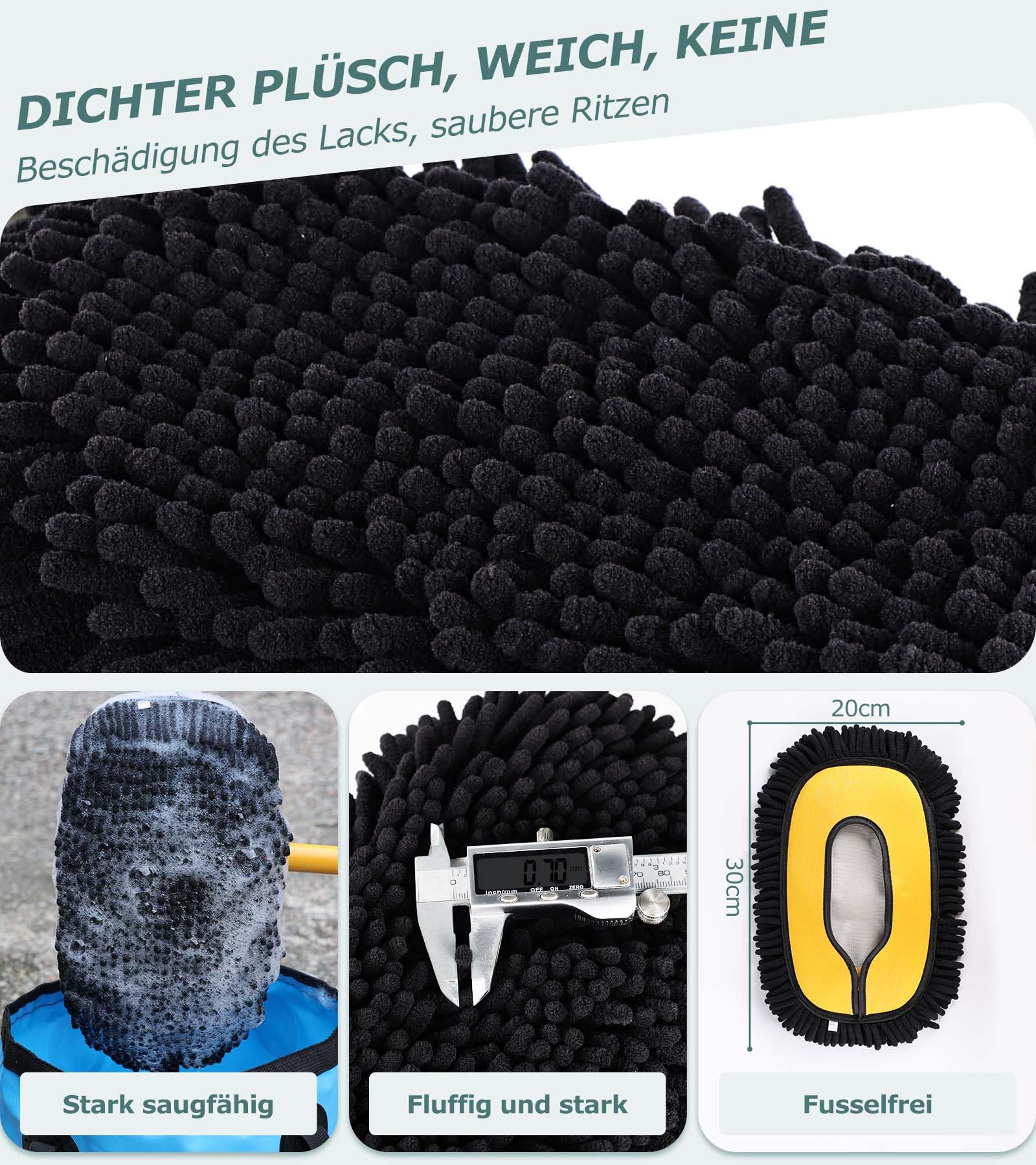 ["🚙【15° Bend Retractable Car Wash Mop】Our car wash brush is ergonomically designed and features a 15° retractable pole, allowing you to wash your car with less effort. The three-stage telescopic pole can be adjusted to a length of 20-40 inches, so you can wash your car at different heights without straining your back or getting your clothes wet.","🚙【90° Rotatable and Easy-to-Remove Car Wash Brush】This car wash brush telescopic cleans with a 90° swivel lock different angles of places, making it easier for you to perform a thorough cleaning. When not in use, the car wash mop can be removed and placed anywhere with the handle.","🚙【Super Soft, 1.6 inch Long Mop Bristles】Car wash brush is made of microfiber chenille, which is soft, lint-free, swirl-free, and scratch-free. Can be used on paint and other delicate surfaces, especially suitable for car paint, so you don't have to worry. Car wash brush is absorbent and easy to clean, with good foaming properties to easily remove dirt and dust while washing the car. *The package includes a total of two mop heads that you can replace!","🚙【Upgraded Thickened Aluminum Alloy Handle】Car wash brush with handle is made of thickened aluminum alloy, with a weight capacity of up to 44lbs, which is stronger and more durable, so the telescopic brush will last longer. The top of the mop handle is wrapped with an EVA cotton sponge grip, which is easy to grip and will not slip or hurt your hand.","🚙【Wide and Variety of Applications】This caravan brush can be used wet or dry. In dry conditions, dust can be easily wiped away. The soft brush is perfect for cleaning, drying, dusting, and polishing your vehicle or home. Car pollen brush can not only clean cars, trucks, SUVs, motorcycles, RVs, and boats, but also windows, dust, ceiling fans, outdoor sheds, children's slides, outdoor structures, and walls!"]