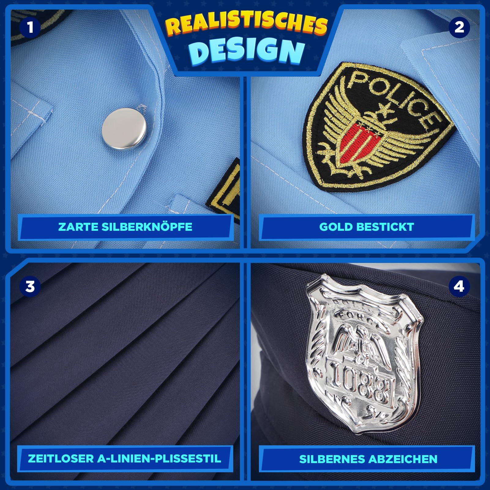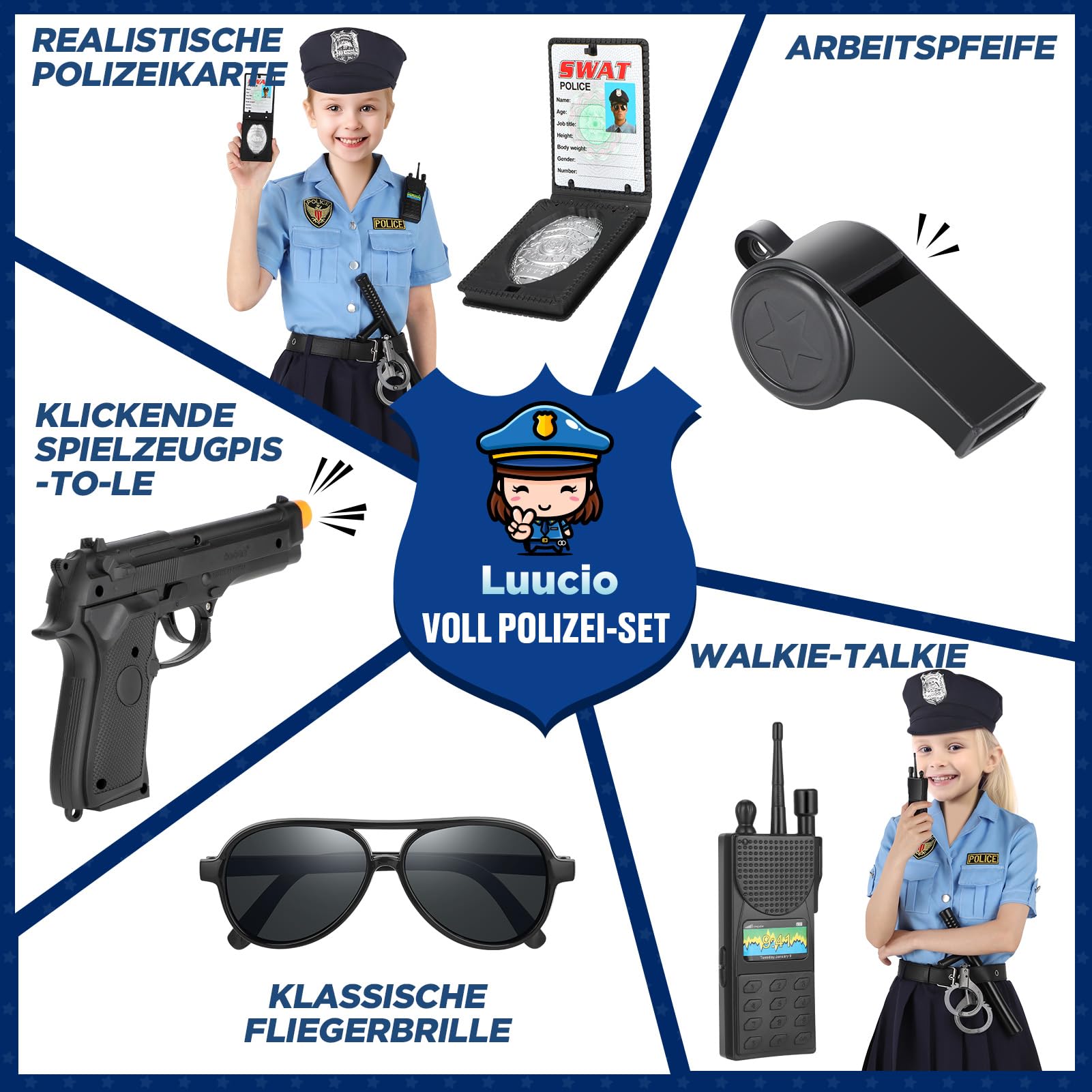 ["【All-In-One Deluxe Police Costume Kids】 - INNOCHEER police Role Play Costume Toy Set comes with everything you need for the best police experience, including Police Hat, Police Shirt, Belt, and Police Badge, Holster, Whistle, Pretend Walkie Talkie, Vision Gear, etc. Best suited for children aged 2-12 years.","【Premium Quality & Safety】 - INNOCHEER Police toys for kids are made of 100% Polyester and are realistically looking. With real buttons, real shirt pockets, and fine embroidery. Safety Test Approved. Skin-friendly, safe for children, durable, washable. (NOTE: Do not bleach; Hand wash only)","【Perfect for Muti-Scenario Play】 - This super affordable Kids Police Costume Pack for boys and girls is not only perfect for Halloween Dress Up parties but also suitable for Theme Party Costumes, Carnival Cosplay, and Theme parties, School play costumes, and more. Add a lot of fun to your Halloween party and other themed activities","【Ideal Gift for your boys and girls】 - A police uniform is perfect for Halloween costume parties and helps develop children's social and communication skills. Your child will feel like a real police officer and win the Halloween costume contest when dressed as a police officer for Halloween.","【Police Officer Costume Size】 - T4 Size: recommended for children aged 2-3 years. Small Size: recommended for children aged 4-5 years. Medium Size: recommended for children aged 5-7 years. Large Size: recommended for children aged 8-10 years. Extra Large Size: recommended for children aged 10-12 years. (Tips: This is just the recommended age. Please select the size according to your child's height, thickness, and Thin). The child will feel like a real police officer."]