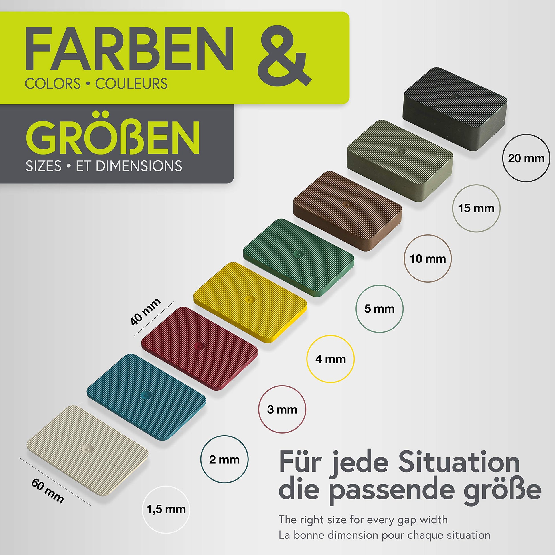 INNONEXXT® Premium Shim Plates | 60 x 40 mm, 40 pcs mix | Spacers, plastic shims, leveling blocks, distance spacers | Load capacity up to 16 t | Set of 1.5, 2, 3, 4, 5, 10, 15, 20 mm