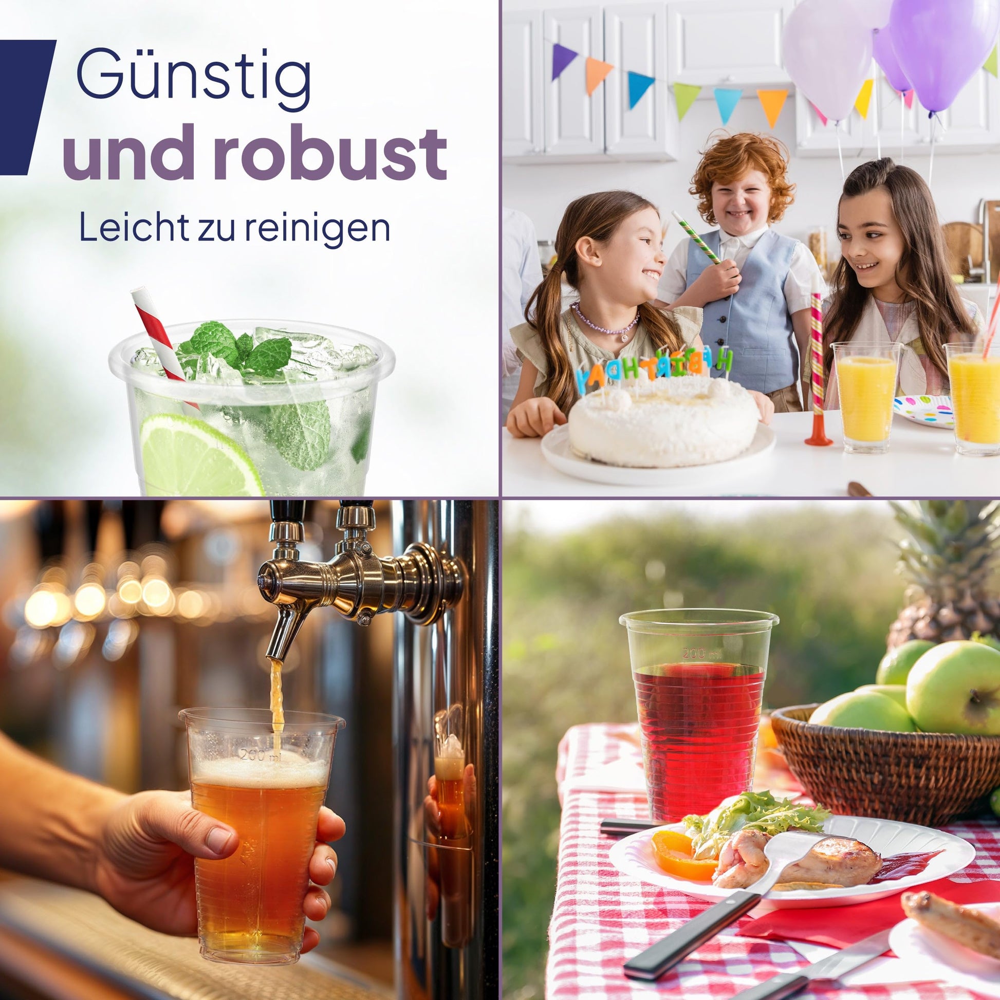 IDEAL FOR ALL EVENTS - Whether for birthday parties, garden parties, weddings, outings, summer festivals, or grand openings - our plastic cups are the perfect choice. They are also great for fun games like beer pong, creating unforgettable moments.