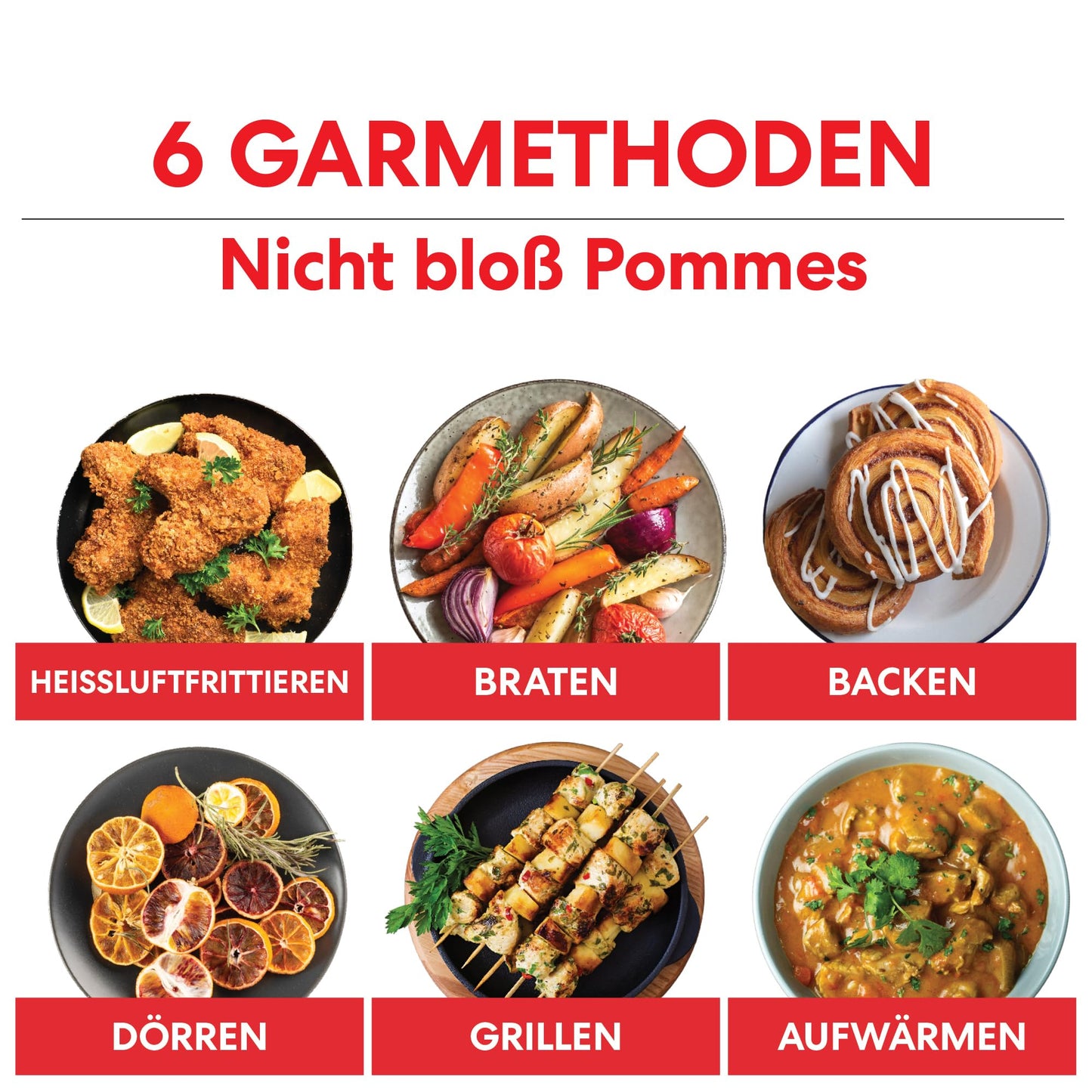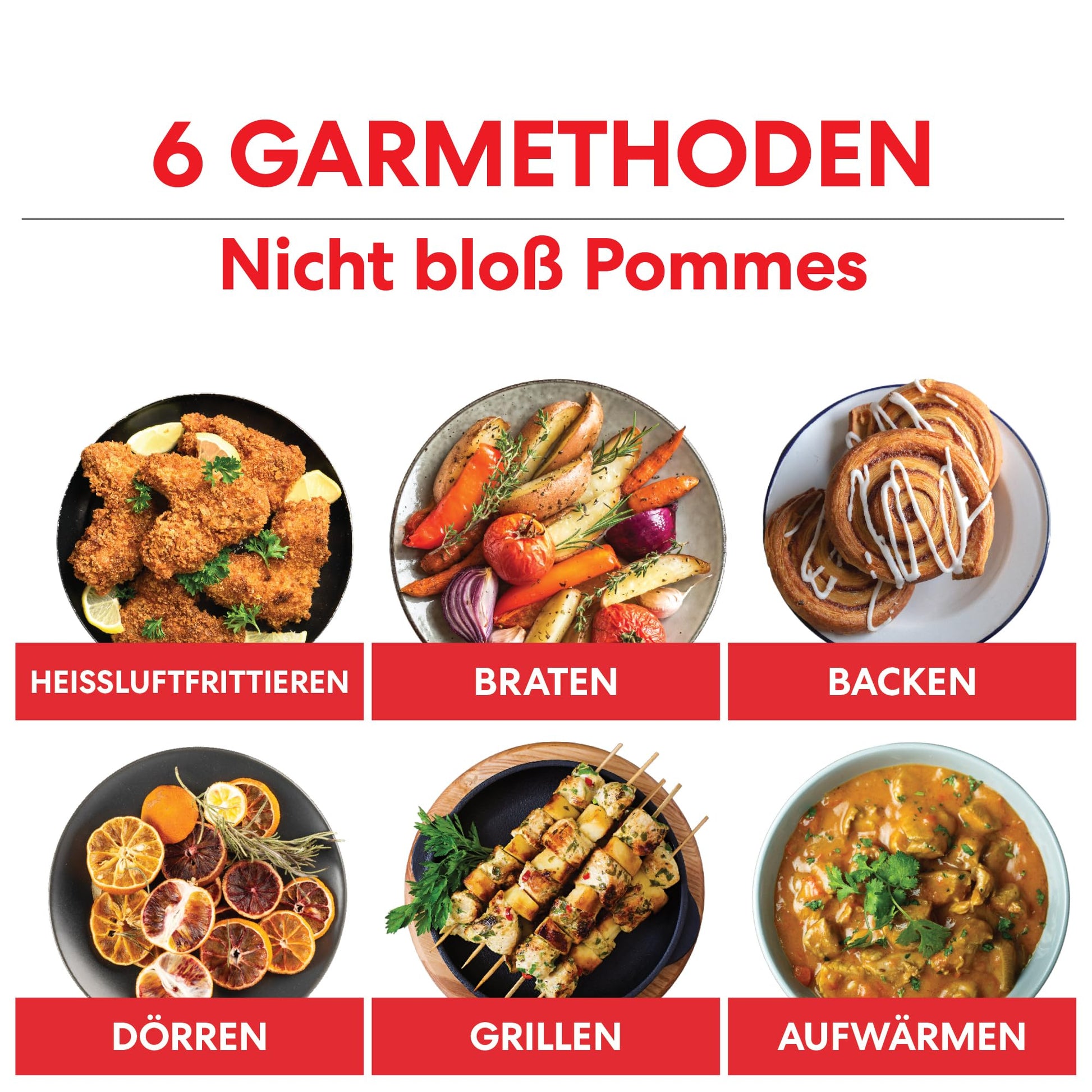 ["6 COOKING OPTIONS - Fry crispy fries, grill vegetables, bake fluffy muffins, roast savory lemon chicken, dehydrate jerky, and reheat", "ABSOLUTE CONTROL OVER THE COOKING PROCESS - The new ClearCook viewing window works with a perfectly placed light inside so you can check on the cooking progress from outside at any time", "SAY GOODBYE TO COOKING ODORS - OdourErase technology with built-in air filters to eliminate odors while cooking", "EASY TO USE TOUCHSCREEN - Smart dial and digital preset buttons for easy time and temperature settings and display of cooking progress", "Full Flavor Without Much Oil And Calories - The EvenCrisp️ airflow technology provides a crispy and tender result with 95% less oil, whether fresh or frozen."]