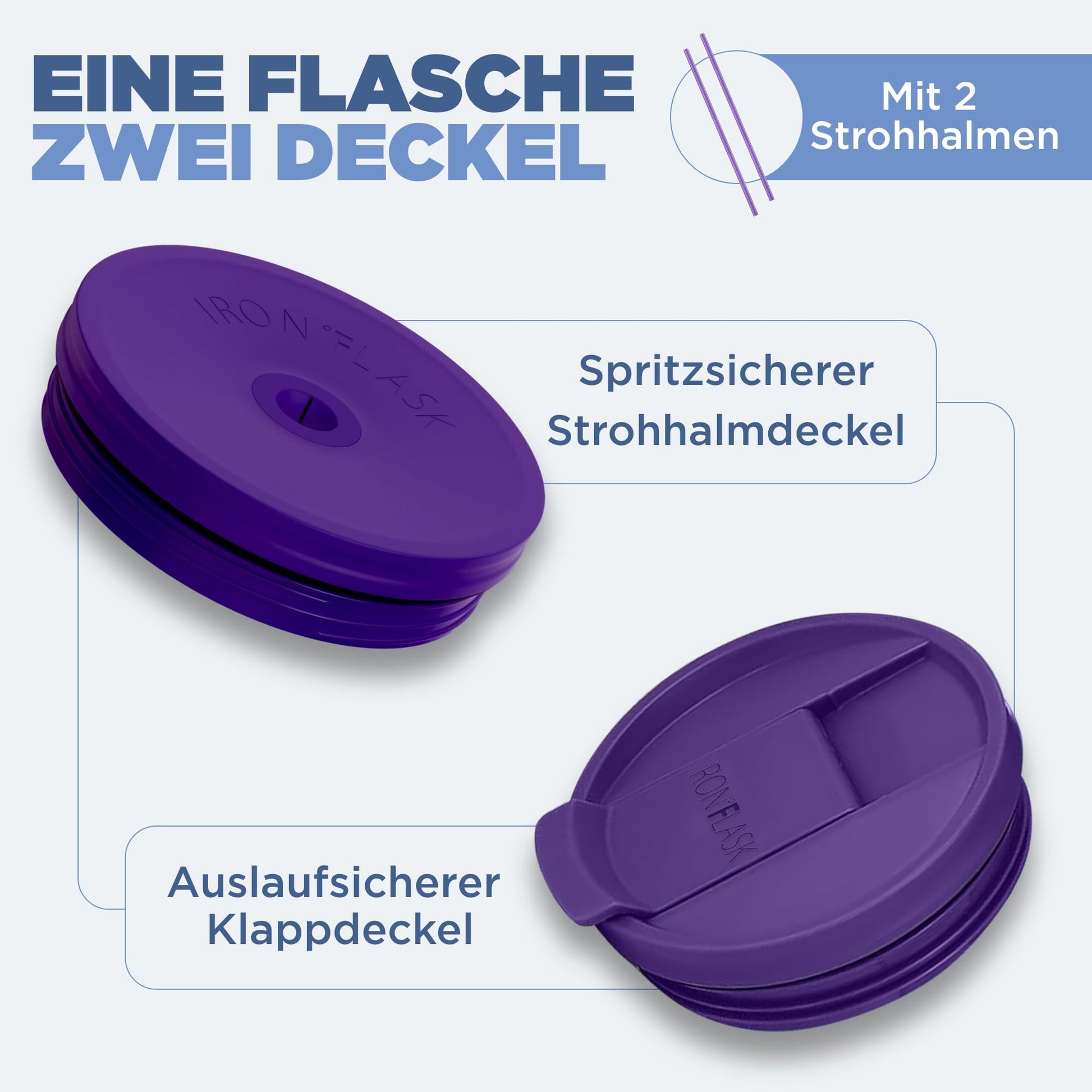 2 LEAKPROOF LIDS FOR EVERY OCCASION: Maximum versatility with two insulated lids! Included are a splash-proof straw lid and a leakproof flip lid - perfect for hot and cold drinks. No leaks, no spills - with these lids your water bottle stays securely closed and is the perfect companion on the go.