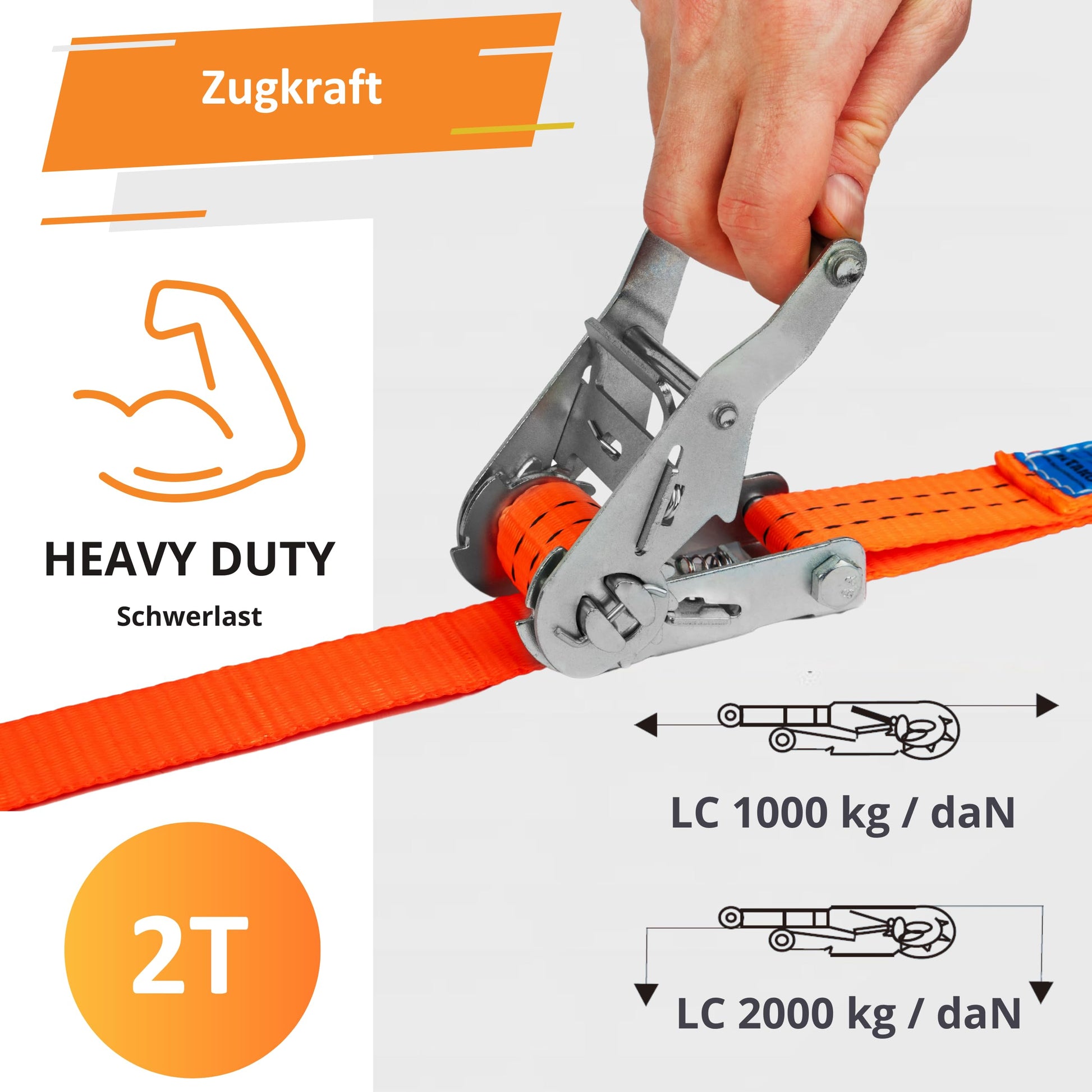INTAKO tie-down straps with ratchet and hooks - 6m 2000kg 35mm - 4 pieces - ratchet set - ratchet strap 2-piece - lashing strap orange - TÜV GS tested and according to DIN EN 12195-2