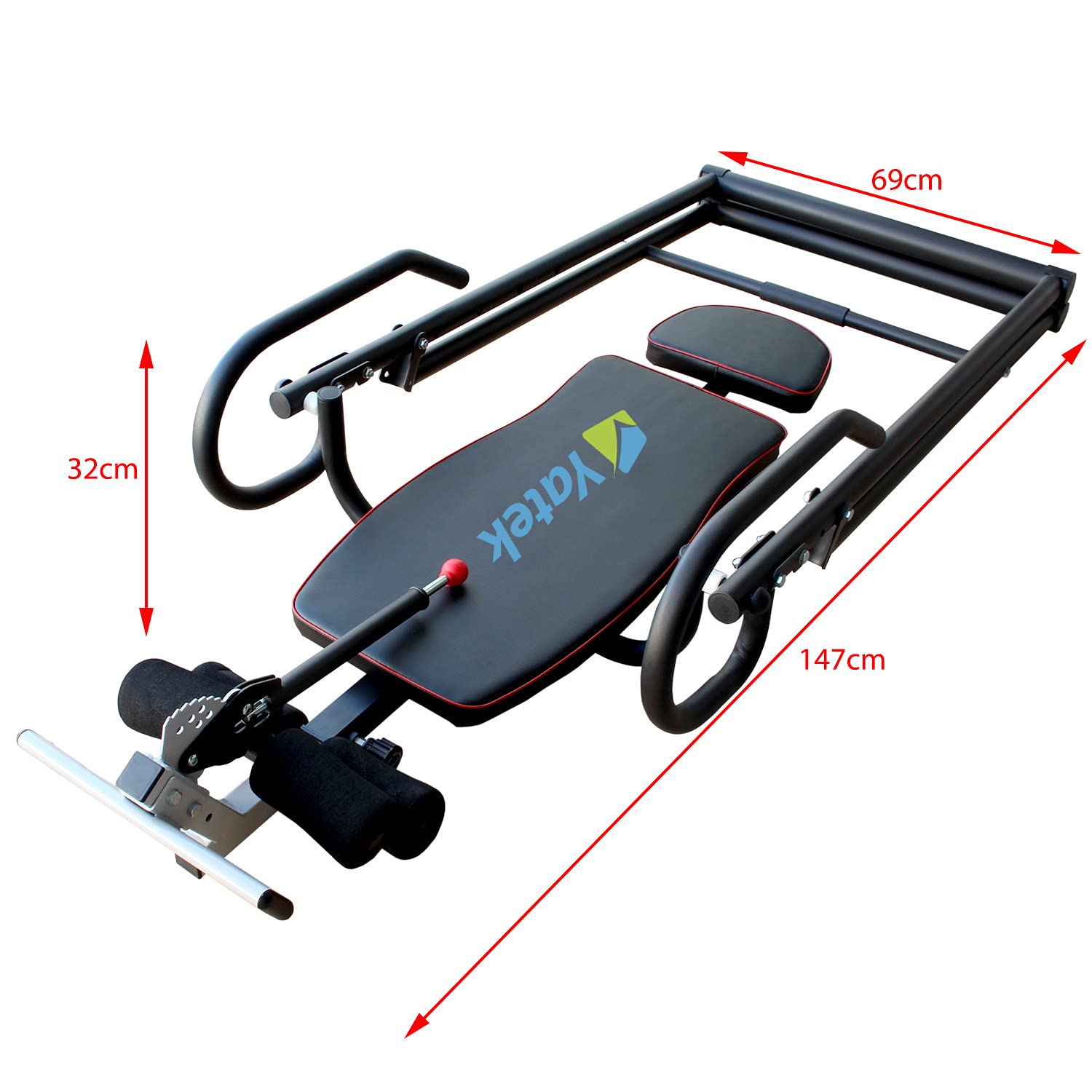 "EASY TO STORE: The Yatek inversion table folds up and takes up only a space of 69x8cm when standing, making it perfect for storage in any location.",