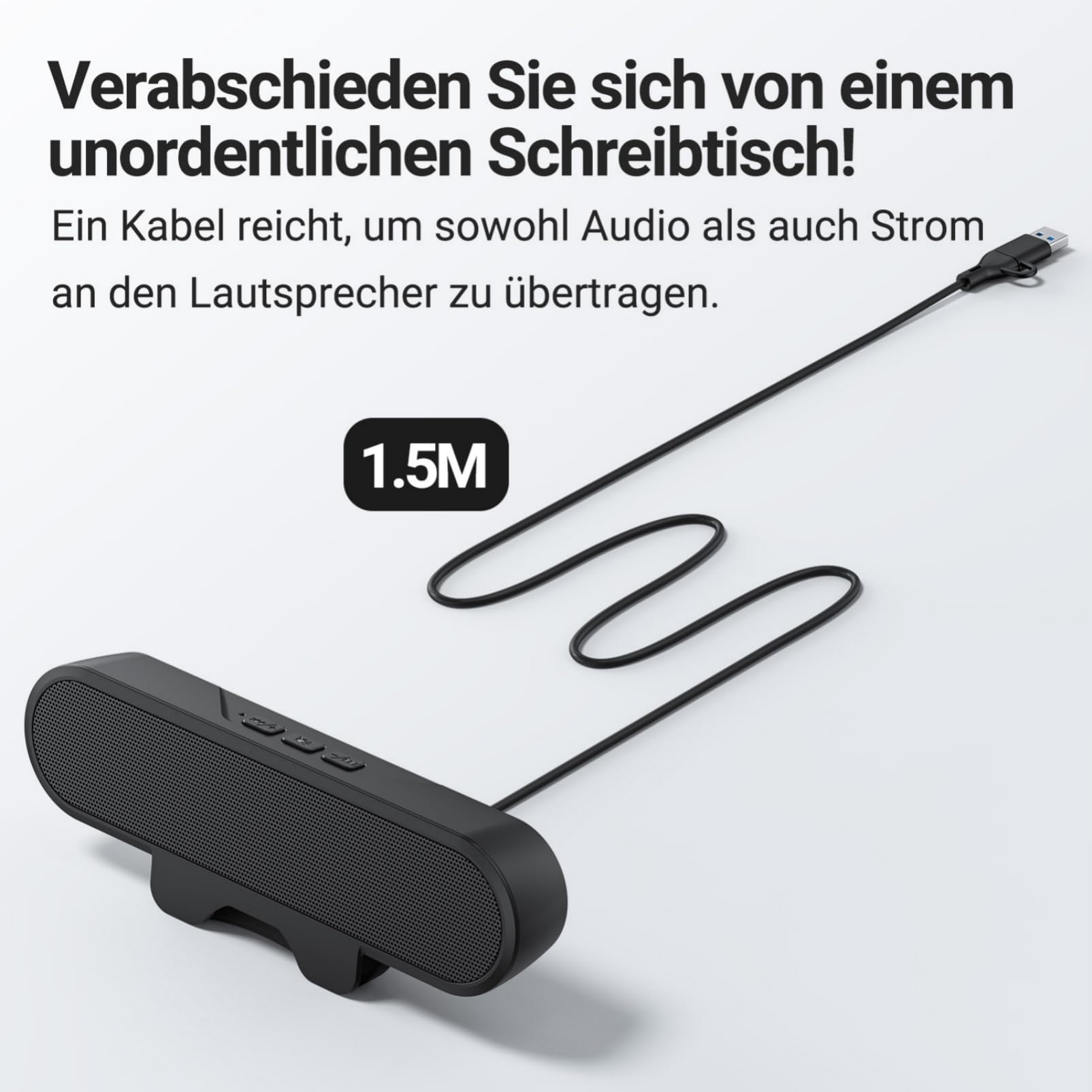 ["Excellent sound quality: The compact PC speakers have two large speakers and a built-in passive radiator. With 10 watts of power, they provide excellent sound quality. The soundbar lifts the sound and projects it forward to ensure a stereo experience.","Easy clip mounting on the monitor: A spring clip on the bottom of the speaker makes it easy to attach it to the top, side, or bottom of your monitor. The clamp fits most monitors up to 3 cm thick and helps keep your desk organized. The speaker can also stand alone on the desk. (The silicone pads on the clip protect the monitor well)","USB-powered stereo computer speakers: A single USB cable connects the speaker to the PC or Mac, providing audio and power. Plug & Play, no 3.5mm AUX cable required, no additional software installation, no batteries needed. This ensures neat cable management and high-quality audio output. (USB-A to USB-C adapter included)","Easy operation with convenient buttons: There are three buttons on the top of the laptop speaker: Volume Up, Volume Down, and Mute. The button positioning allows for easy and intuitive operation.","Customer service guarantee: If you have any questions about the INWA speaker, please feel free to contact our customer service team. We will address your concern within 24 hours."]