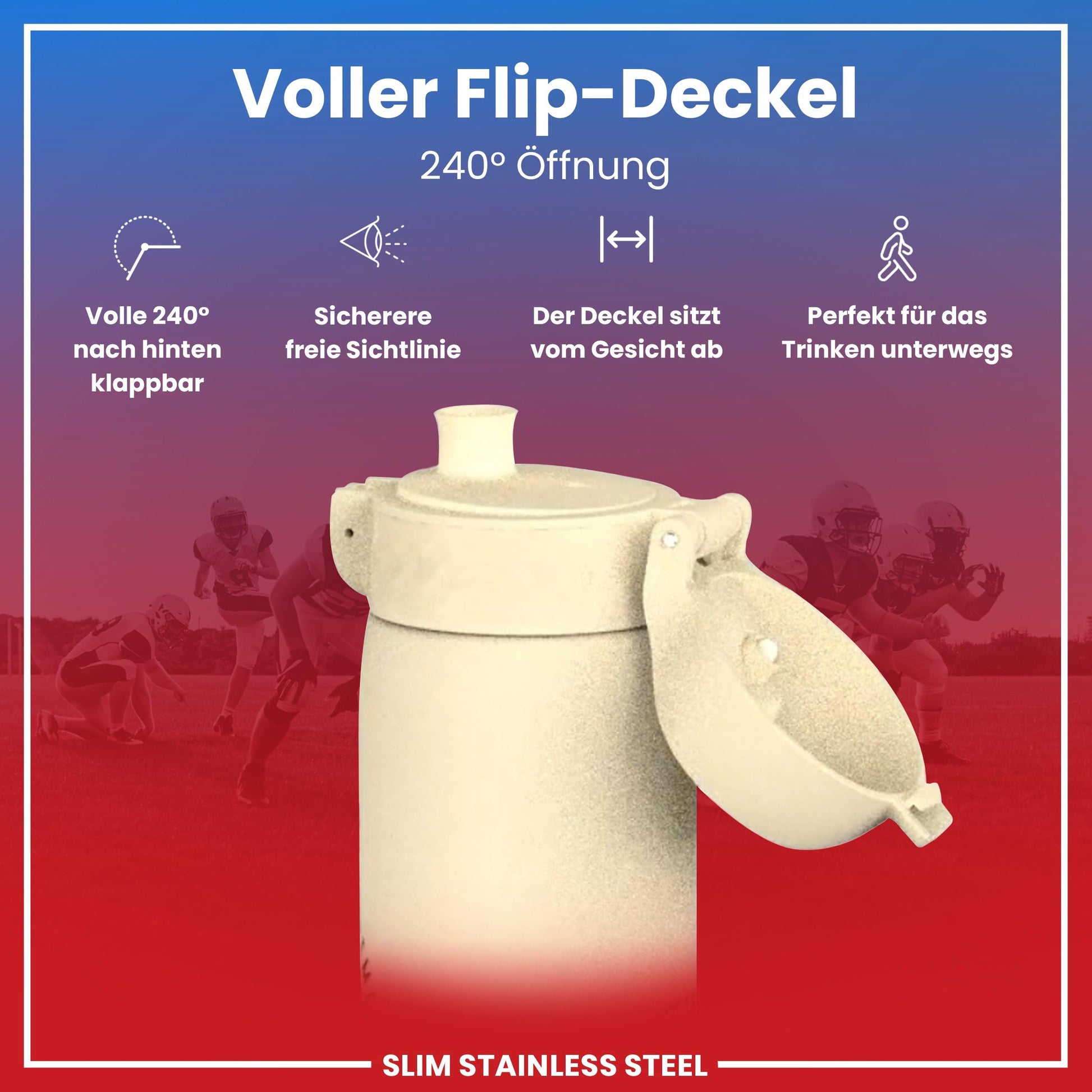 ["PREMIUM STAINLESS STEEL - This non-insulated stainless steel bottle is lightweight, sturdy, and durable. Ideal for kids and adults - perfect for school, everyday, and travel.","EASY REFILL - The flip lid folds completely back for easy drinking. The wide opening makes quick refills and adding ice cubes easy.","VERSATILE & PORTABLE - As slim as a soda can, it fits in lunch boxes, cup holders, and backpacks. A convenient solution on the go.","ECO-FRIENDLY & REUSABLE - This reusable bottle is made of recyclable stainless steel - a sustainable alternative to disposable cups.","DISHWASHER SAFE & ODOR-RESISTANT - Easy to clean and odor-free. Hygienic for daily use. Note: Not suitable for temperature retention."]