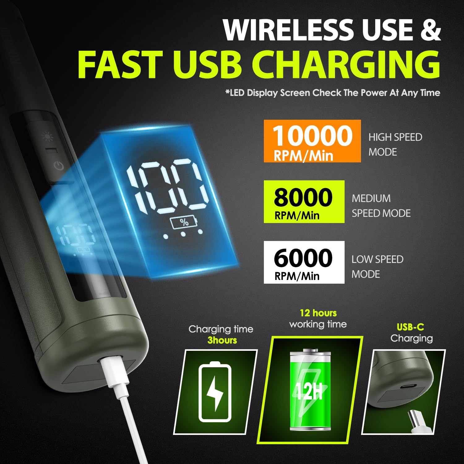 "【3 Speed Switch and Grinding Ports】: The IREDOON dog nail clipper features a 3-speed switch and 3 grinding ports, allowing pet owners to adjust the speed according.",
