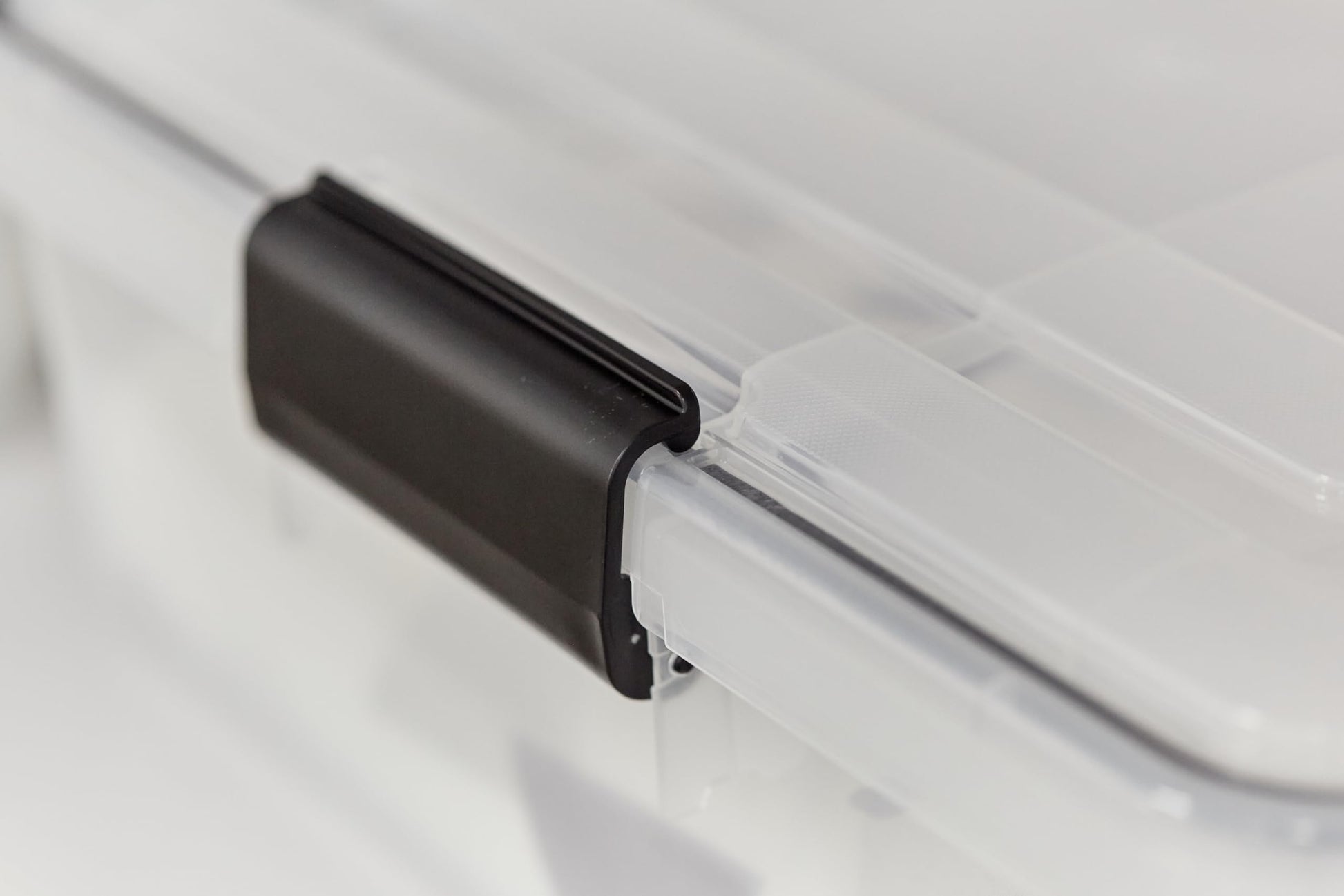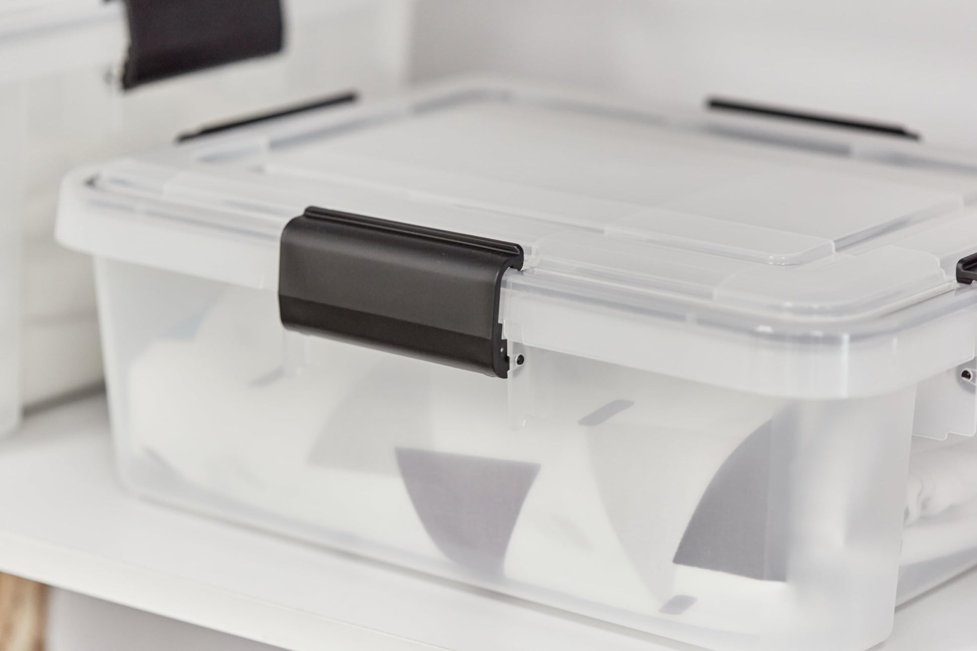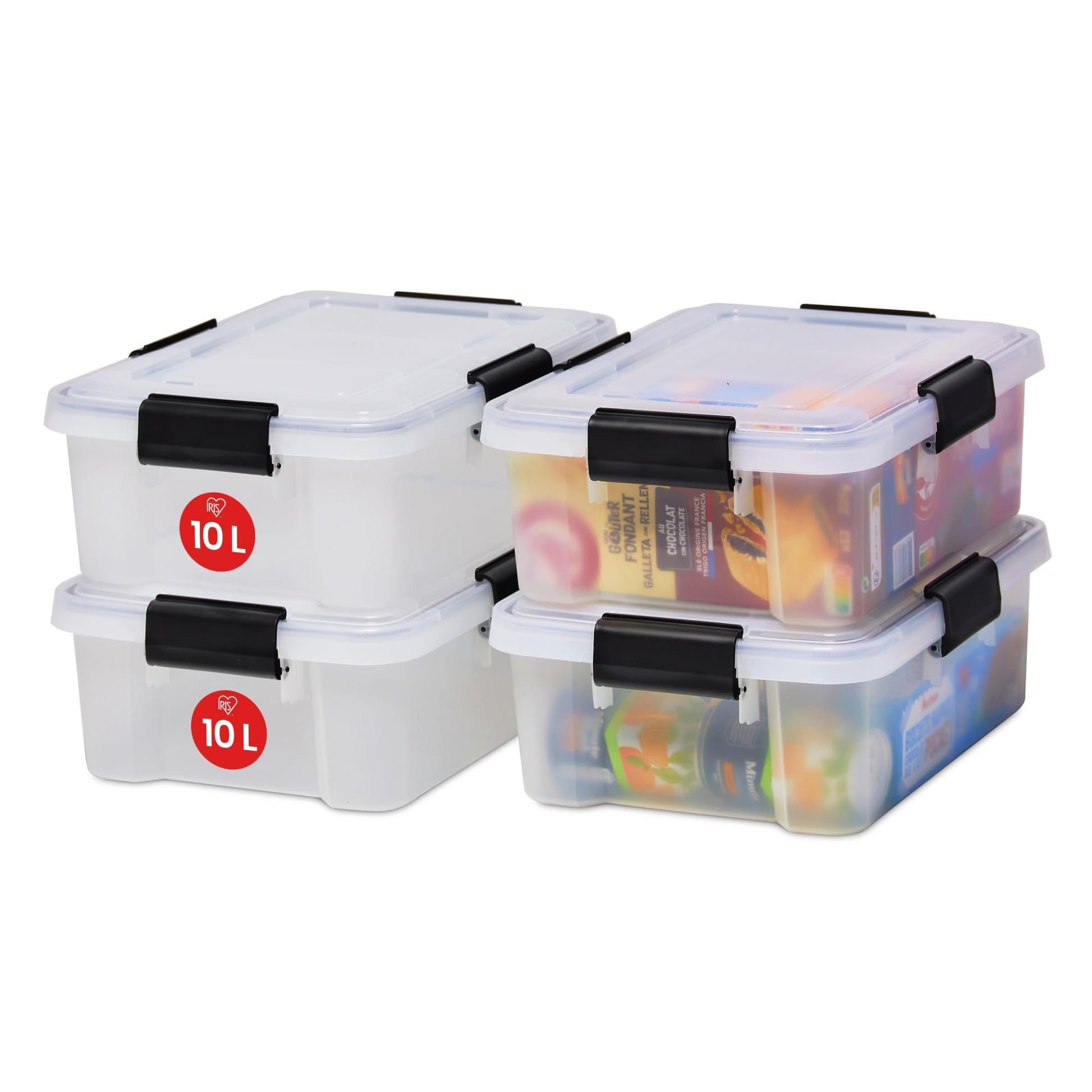 Iris Ohyama airtight plastic storage boxes with lid, 10L, set of 4, Transparent, Hermetic watertight seal, Robust snap locks, Stackable, Dust protection, BPA-free, AT-S