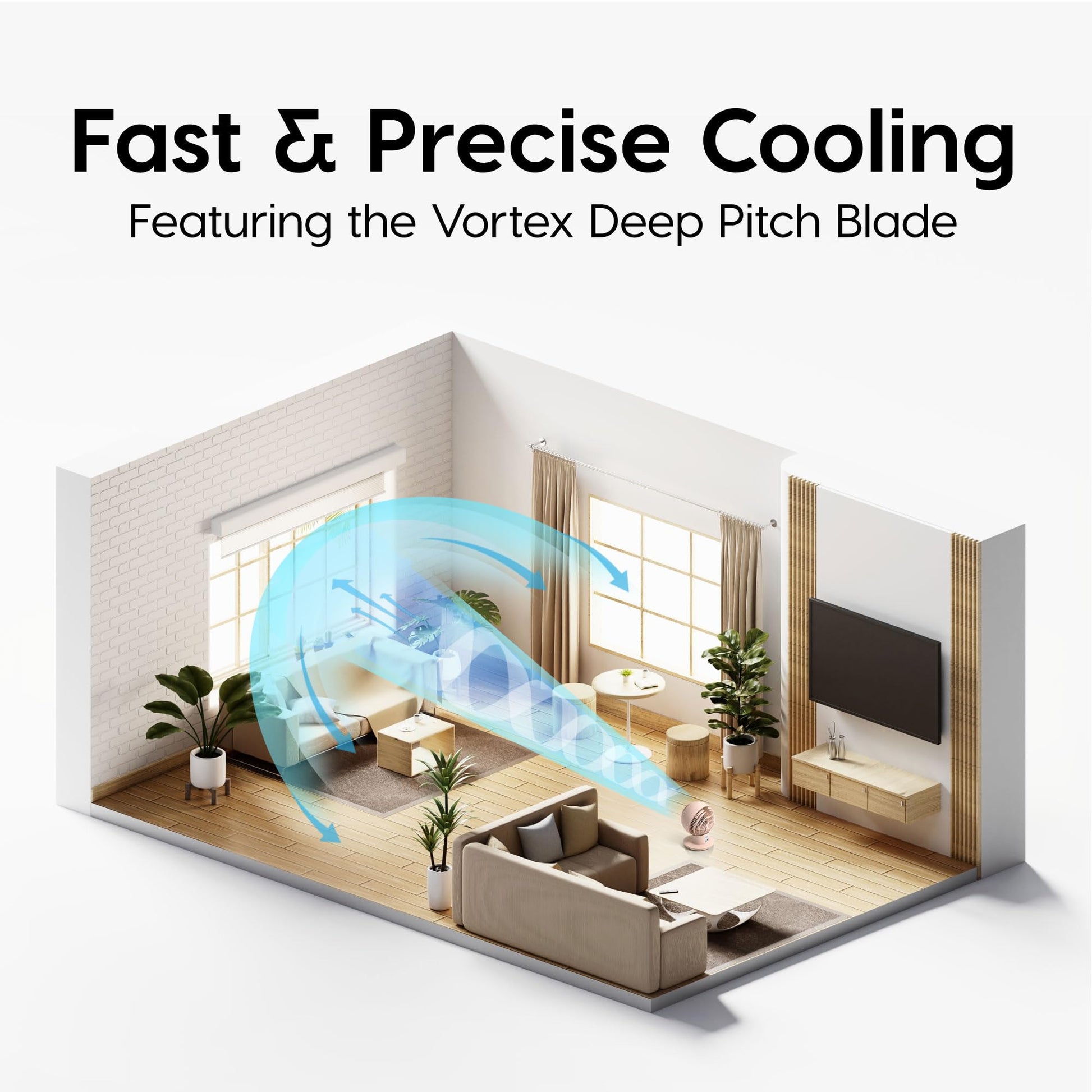 "💪EXPERIENCE THE PERFORMANCE: Deep-pitch blades provide a stronger spiral airflow reaching up to 25 meters and covering up to 30 square meters ✨ AND THE COMFORT: The "Natural Breeze" function replicates wind patterns by changing the strength of the airflow.