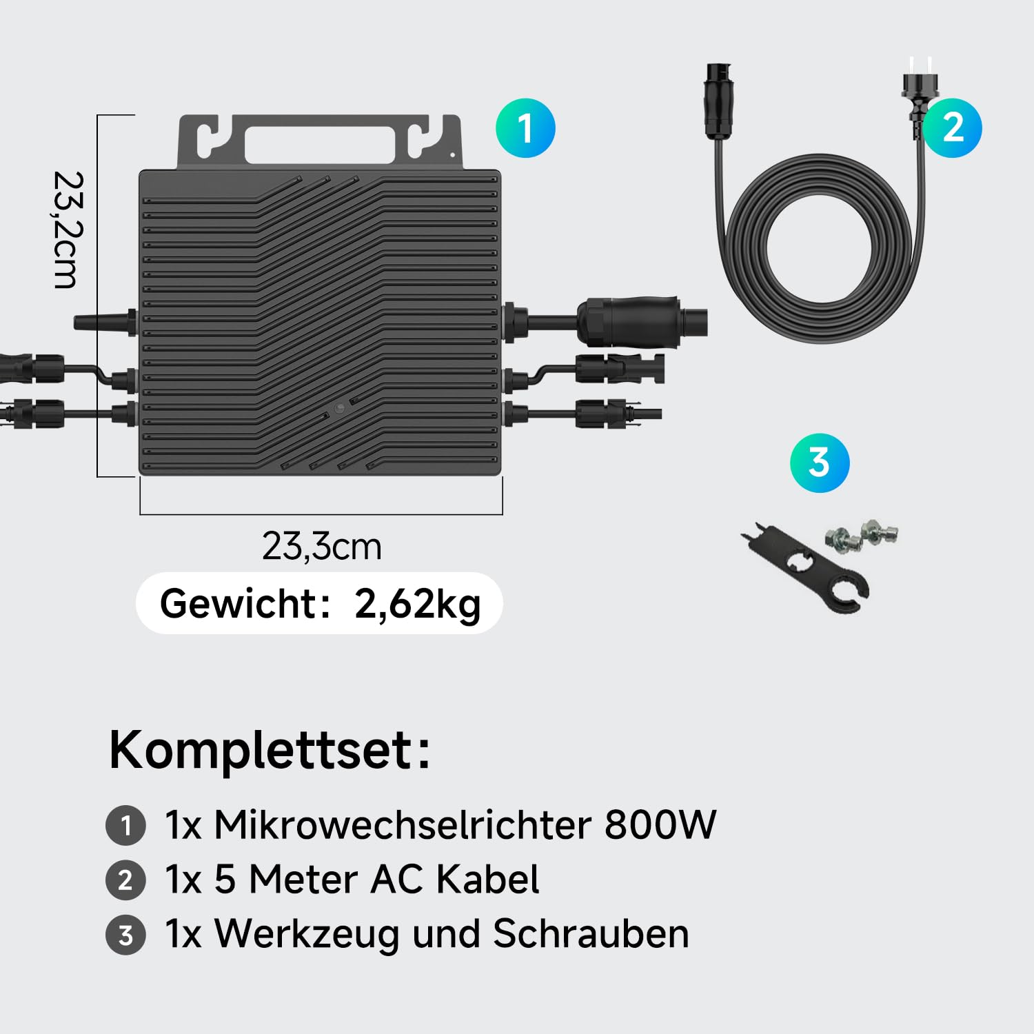 iRnergy micro inverter 800W, PV inverter balcony power plant micro inverter MPPT, 5 meter AC cable, WLAN BT for solar panels