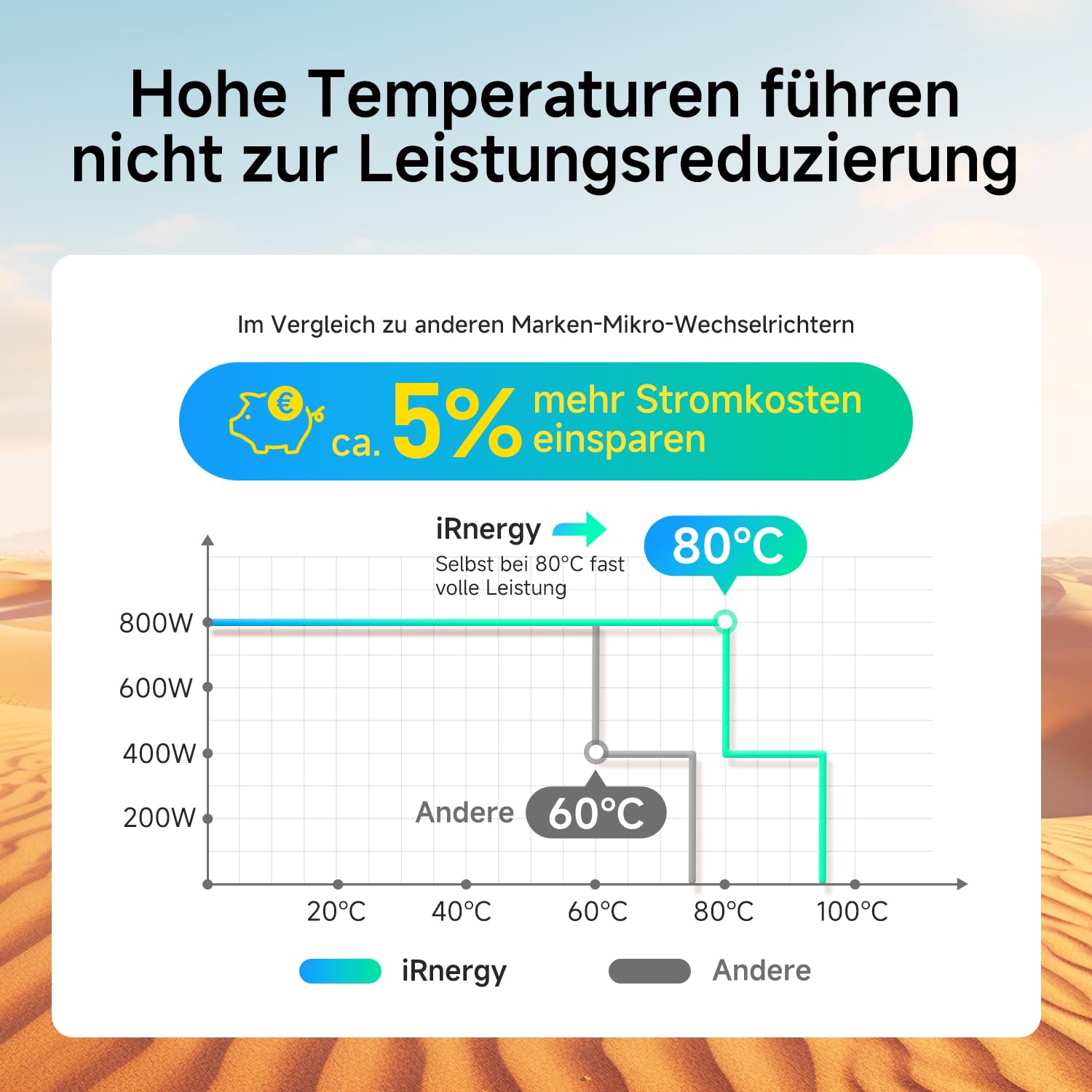 STURDY SAFETY, CERTIFIED PROTECTION: Choose this iRnergy 800W inverter, tested according to recognized safety standards, and benefit from a durable and secure solution. The integrated surge protection ensures additional safety and reliable performance over many years.