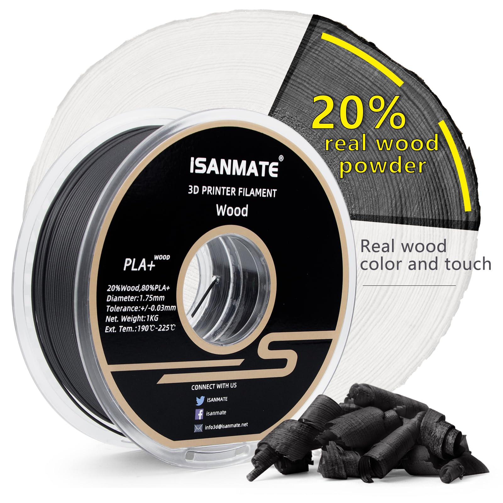 iSANMATE Wood PLA+ Filament 1.75mm, Ebony PLA+ Filament for 3D printers (20% wood powder + 80% PLA+), 1KG spool, Matte wood texture, Accuracy +/- 0.03mm.