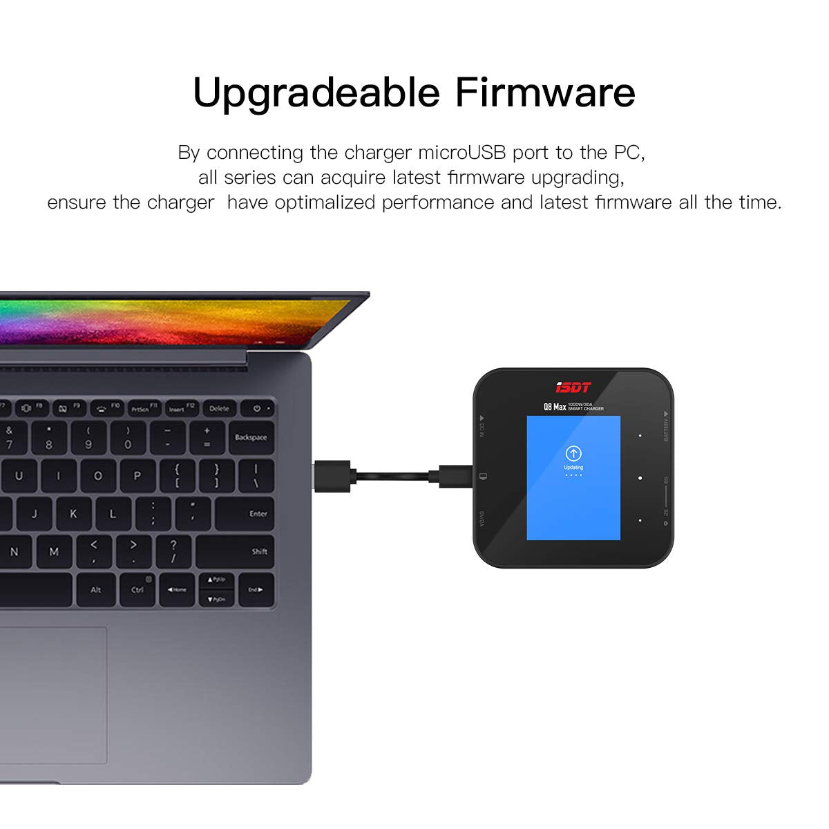 "New generation of portable chargers: 1000W high power, up to 33A charging current, support for 2 ~ 8S batteries. Glows in the dark and introduces dark mode. Scos 2.0 new feature for dark mode. Suitable for scenarios with poor lighting conditions. The system adapts the user interface to dark tones. Reduces light damage to the user's eyes. 5V/2A USB output. Q8 Max with 5V/2A USB output, for charging mobile devices. IPS screen: Low power consumption: 2.4-inch IPS screen, automatic brightness adjustment, 178° visible angle, clear and distinct display, even in different harsh environments or angles, as well as in bright sunlight. Advanced artistic cooling air channel, Active cross-flow cooling air channel design, Initiator ball bearing fan, with precisely crafted aluminum alloy fins and hi-tech silicon thermal pad, Building a highly efficient heat dissipation system."