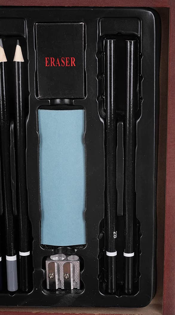 ["ALL INCLUSIVE - The art set in the case has many elements, including: 60 crayons, 24 oil pastels, 24 colored pencils, 24 watercolors, also 2 brushes, sharpener, 8 sandpapers, an eraser, two HB and 2B pencils.","Wooden box: The children's art set comes in a convenient wooden box with lock and handle. This makes the contents of the case practical and very easy to transport.","VERSATILE - The children's art set is designed for children of all ages and is suitable for both older and younger children, regardless of gender. It can also be used by older adults. The set can be used for play at home or in school.","PRACTICAL - The art set has special compartments that allow quick and easy access to each individual element while providing protection and organization at the same time.","SPECIFICATIONS - Material: wood; lockable case: yes; dimensions: 23/37.5/8 cm; weight: 1.96 kg;"]