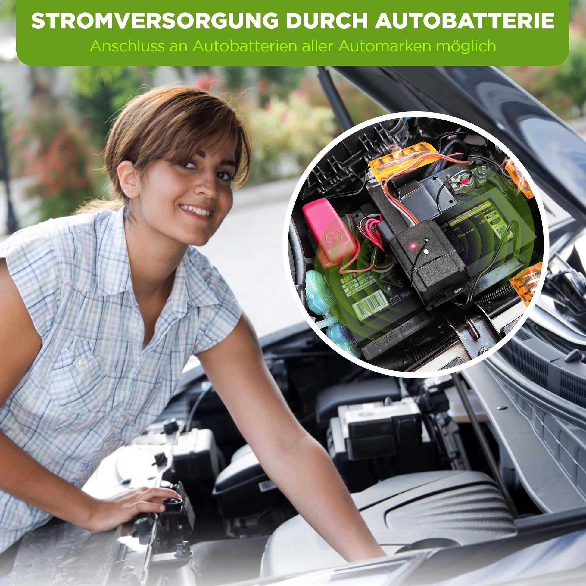 "Patented and triple marten protection - repels martens with high voltage, LED flashing light function, and ultrahigh tones. For vehicles with CAN-BUS. Waterproof with IP65. Separate on and off switch for maintenance/service work in the engine compartment. Four high voltage plates, mounting accessories, and German user manual. High voltage adjustment 400 V DC self-rolling frequency 12 - 24 kHz. The marten-mouse-shock device has automatic shutdown in case of weak car battery with a voltage of less than 11 volts, preventing deep discharge. When "Car-Battery-Control" (CPC) is activated, the device is out of operation and protects the car battery. Once the battery voltage rises to approximately 11 volts or higher (due to battery replacement or regeneration), the marten-mouse-shock device switches on."