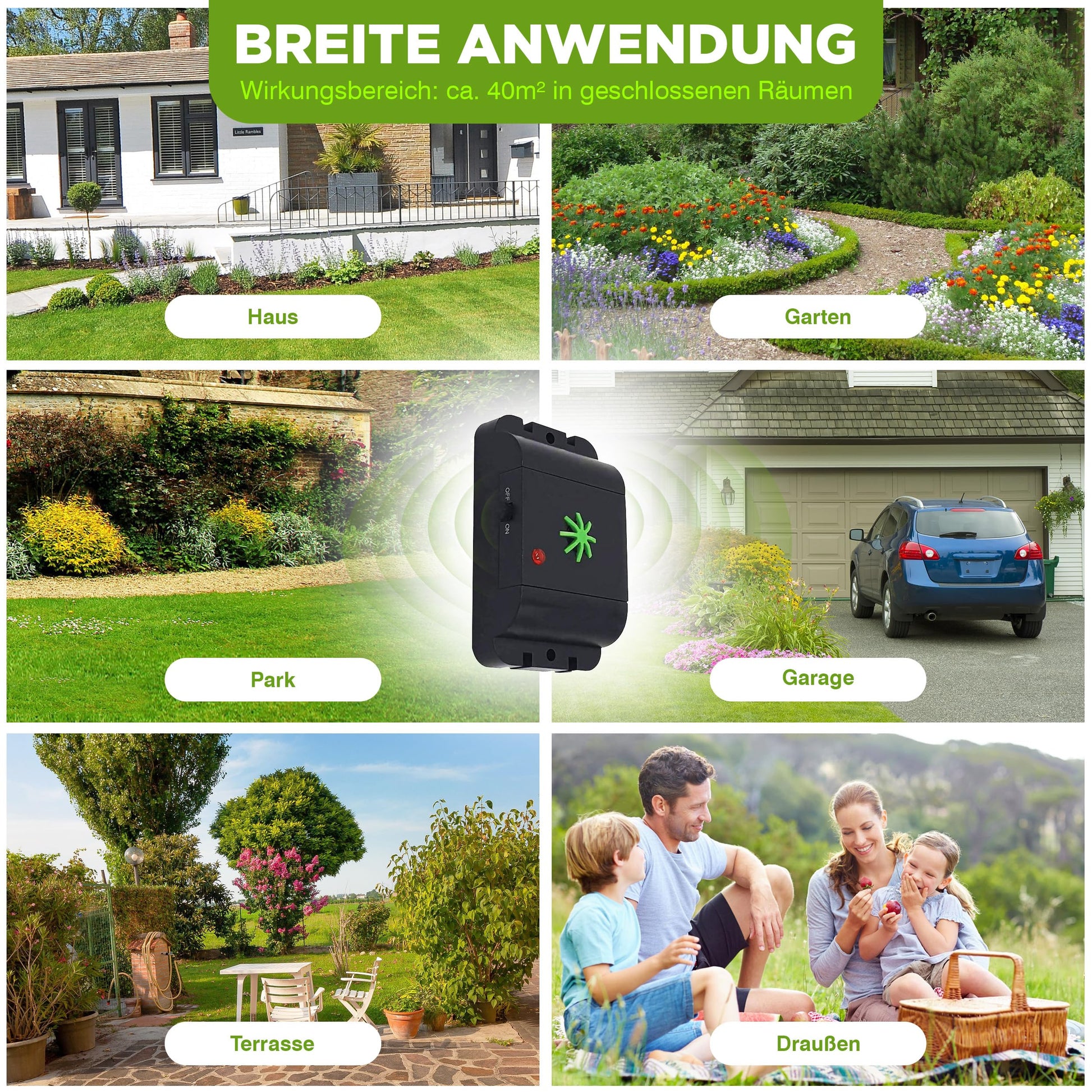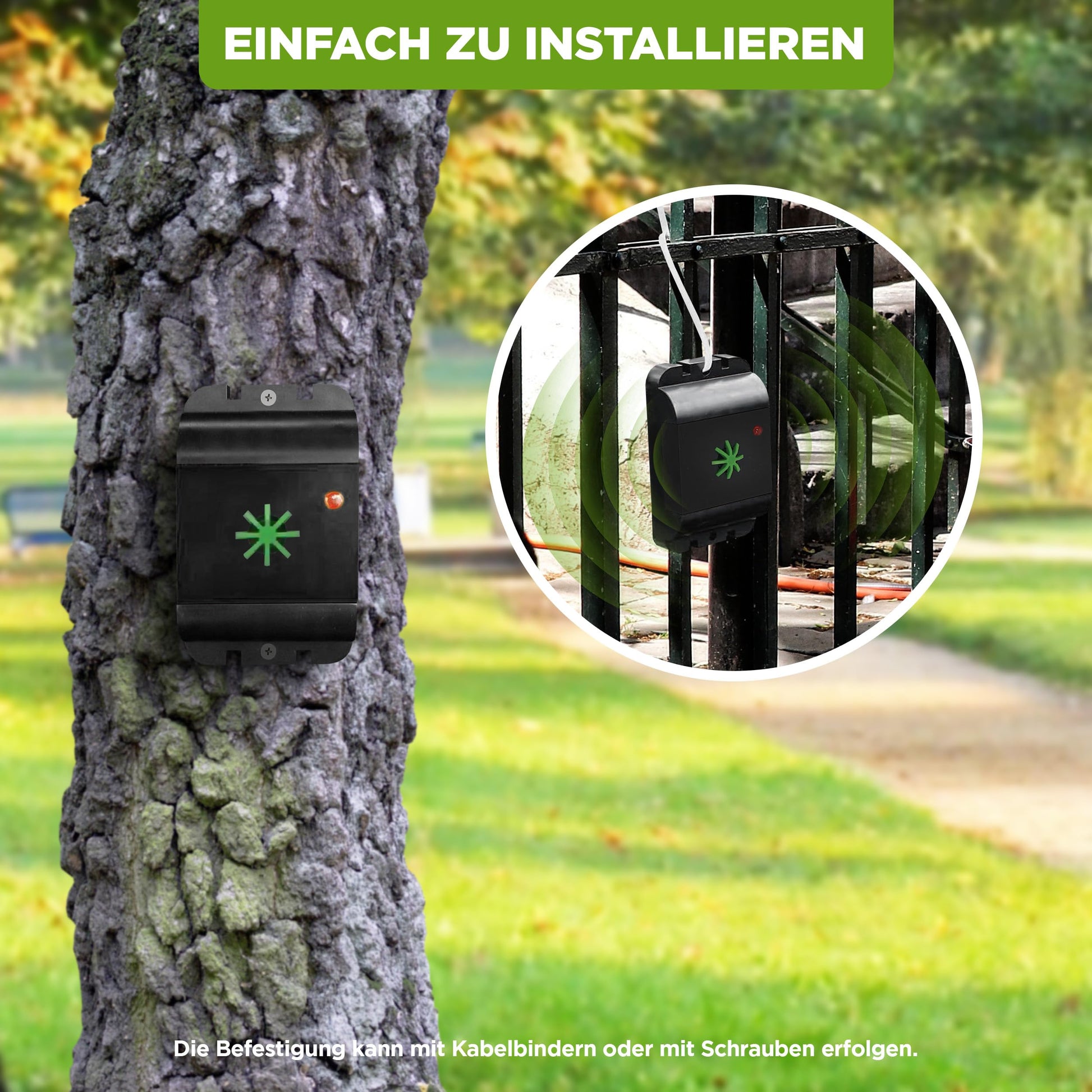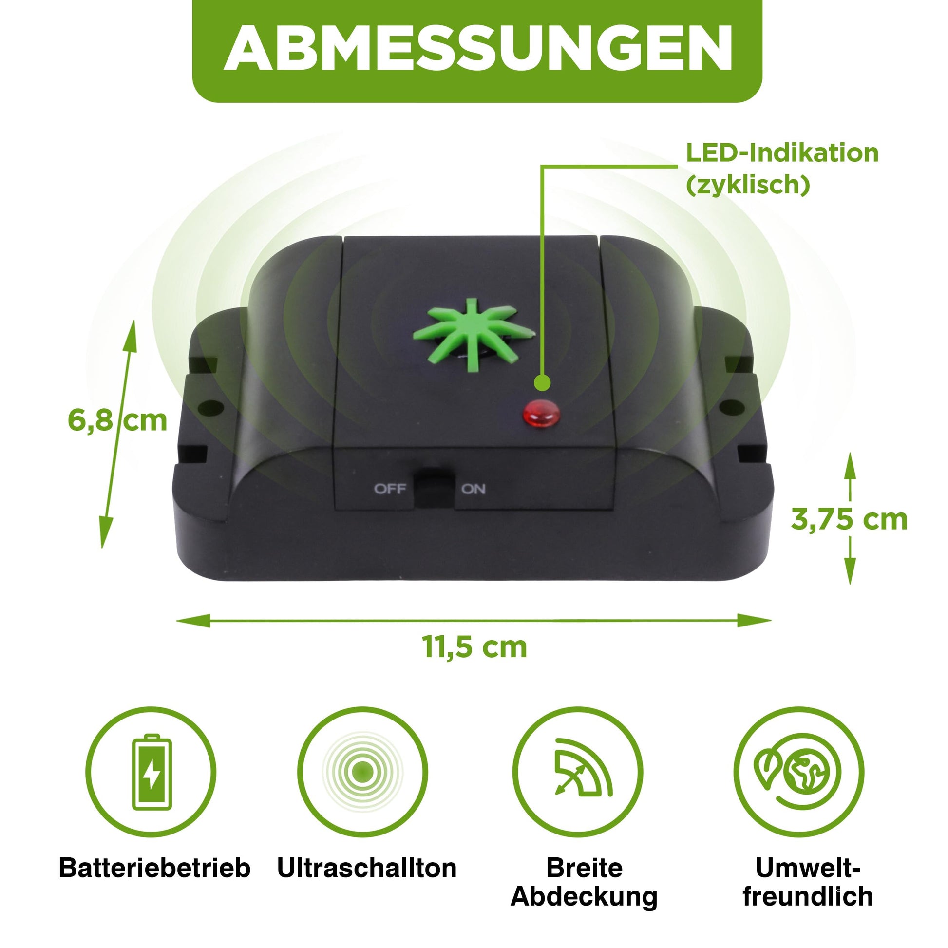 ["COMPACT DOG/CAT REPELLENT: The ultrasonic deterrent is portable and uses a battery set (6x AAA Micro per device, included in delivery) with a lifespan of up to 8 months.","HIGH-PITCHED TONES: The device emits high-frequency tones in intervals (approx. 5 sec. on and approx. 25 sec. off). The signals are inaudible to humans but irritating to dogs and cats.","ANTI-HABITUATION EFFECT: The alternating frequencies reduce habituation, ensuring continual repellent function. To deter animals that habitually visit a particular area, 7-14 days may pass.","POWERFUL RANGE: The effective range covers about 40 square meters per device. The cat and dog deterrent is ideal for outdoor use.","MAXIMUM EFFECTIVENESS: With an on/off switch, suitable for use in the house, garden, garage, barn, attic, or yard"]