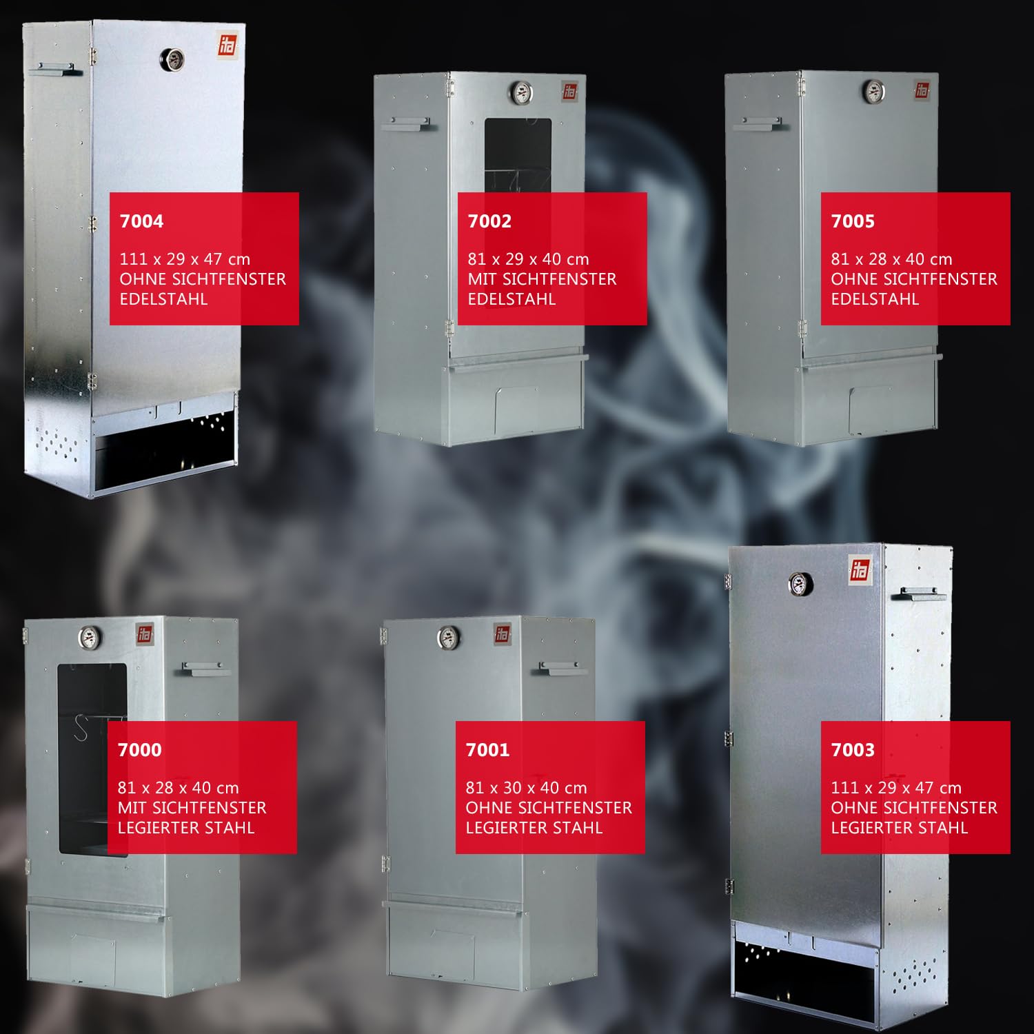 ITA Smokehouse 7012 - Smoker Set with Smoke Generator & Wood Chips - Smoke cabinet with 3 levels - Alloy steel, with viewing window & chimney - Quality Made In EU Direct from the Manufacturer