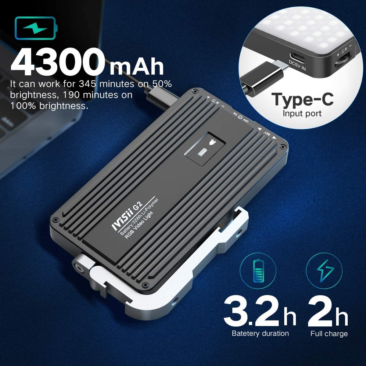 IVISII G2 RGB portable camera light, built-in 4300 mAh lithium battery, video conference lighting, 2600-10000 K, 12W full-color LED light panel for photography, studio, wedding shots