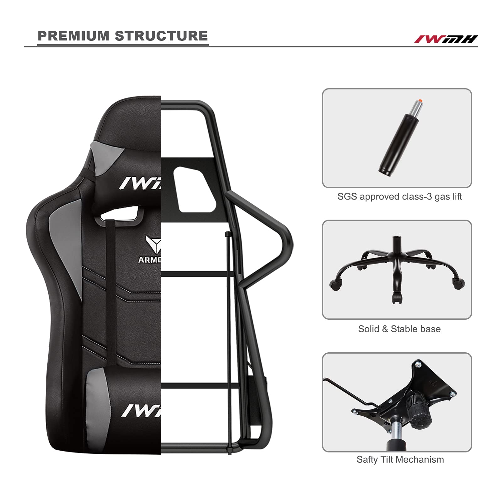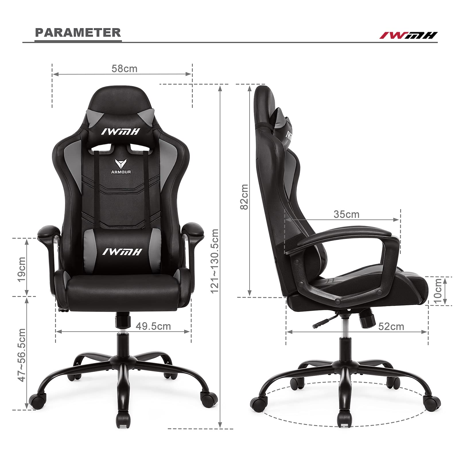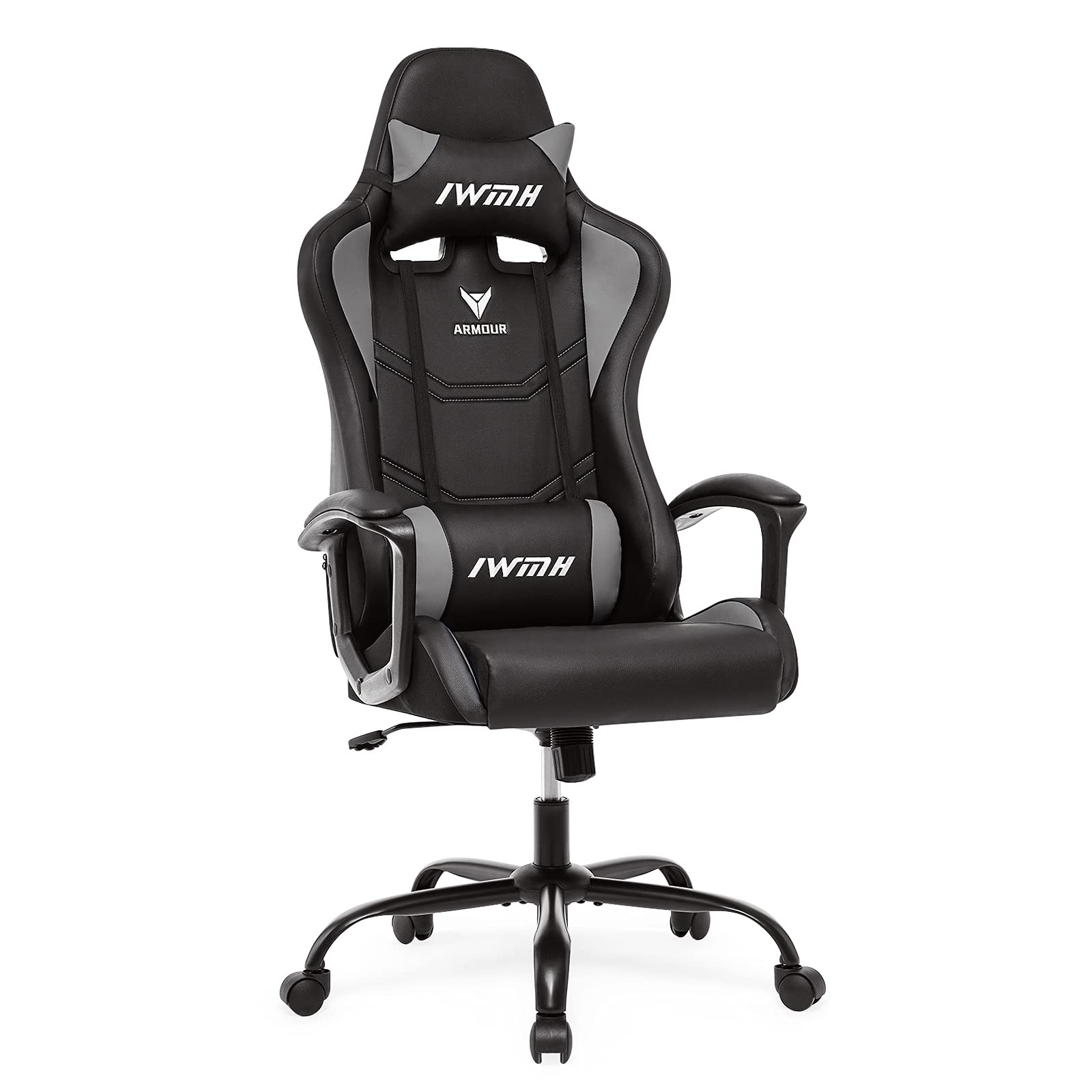 IWMH Gaming Chair, Ergonomic Computer Chair with High Backrest, Height Adjustable Swivel Chair, Racing Chair with Armrests, Adjustable Headrest and Lumbar Support (Gray)