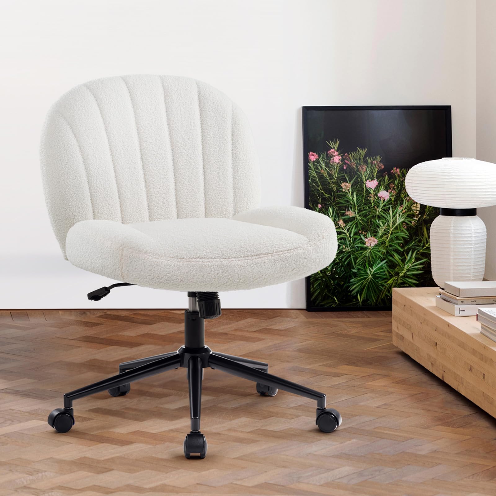 IWMH office chair without armrests, height-adjustable swivel chair with casters, desk chair with fabric upholstery, ergonomic chair, reading chair with wider cushion for cross-legged sitting (White)