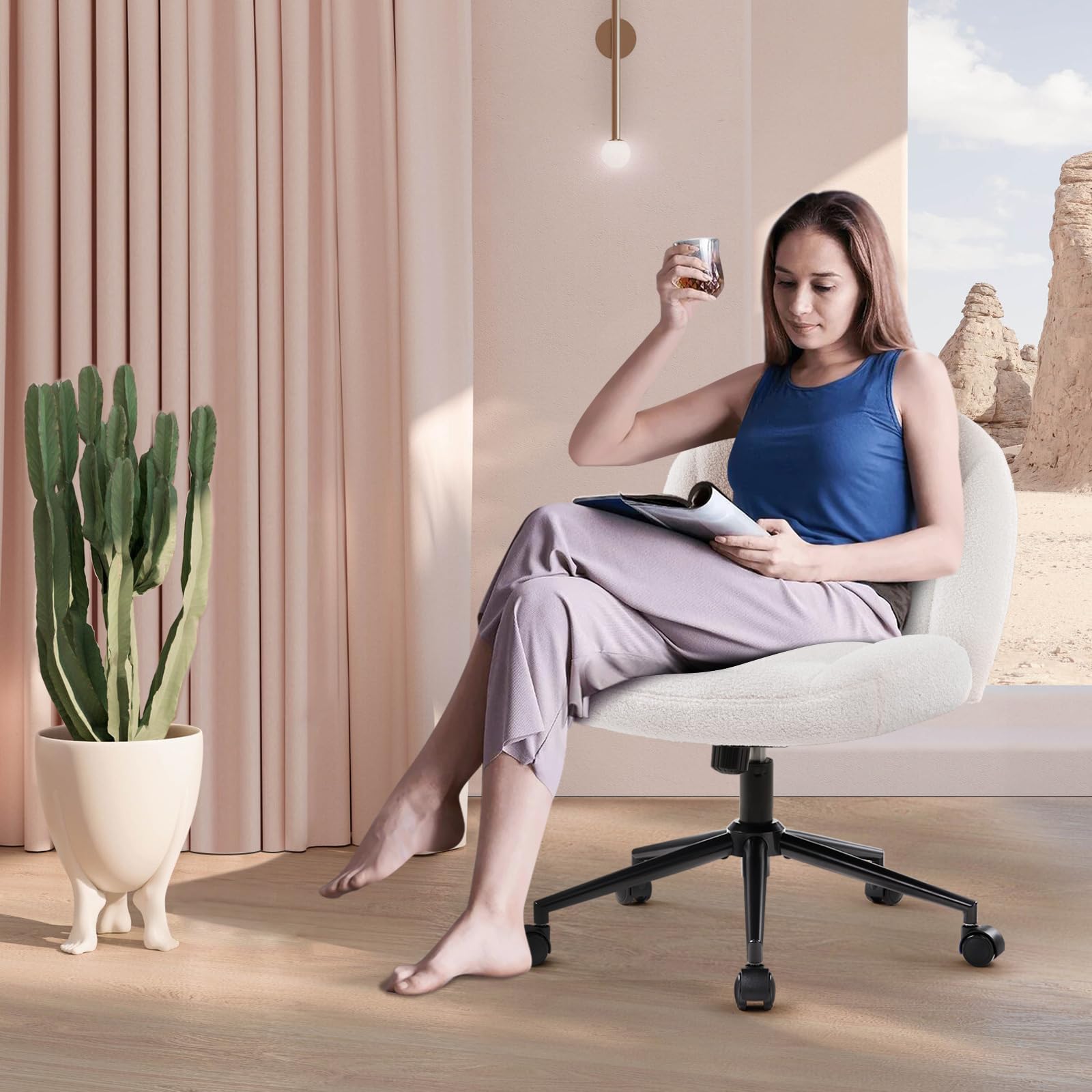 ["Soft and Wide Swivel Chair"] It adopts a wider and higher design, allowing you to sit comfortably in a cross-legged position or curl up on the chair. The backrest and seat are padded with high-elastic foam and covered with comfortable fabric, the fuzzy touch does not irritate the skin, skin-friendly and breathable, to ensure all-day comfort and a comfortable experience.