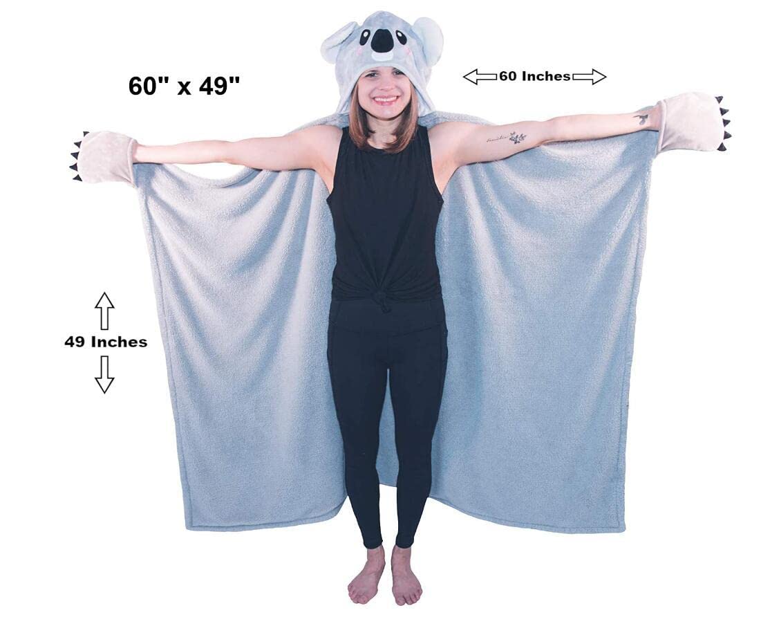["MATERIAL: Flannel Coral Fleece Velvet, Warm Material, soft and comfortable, outer layer is a flannel blanket, inner side made of flannel, providing warmth in cold environment.","SUPER COZY: Double-sided soft flannel, This beautiful portable blanket is incredibly soft and fluffy, wrapping you in a warm embrace that you will never tire of. It also features high-quality and practical buttons that allow you to wear the blanket hands-free or as a cape for added convenience and comfort.","Hooded Blanket Design: Unique sloth/penguin/koala hood and paws, cute animal cartoon design, making the hooded blanket look very adorable!","GREAT GIFT FOR WOMEN: It's a great idea if you're looking for a sweet gift for your wife, mother, daughter, the perfect gift for all kinds of occasions, including Christmas, birthdays, or just as a gift for any special day.","DELIVERY NOTE: The product will arrive in your hands within 5-7 days."]