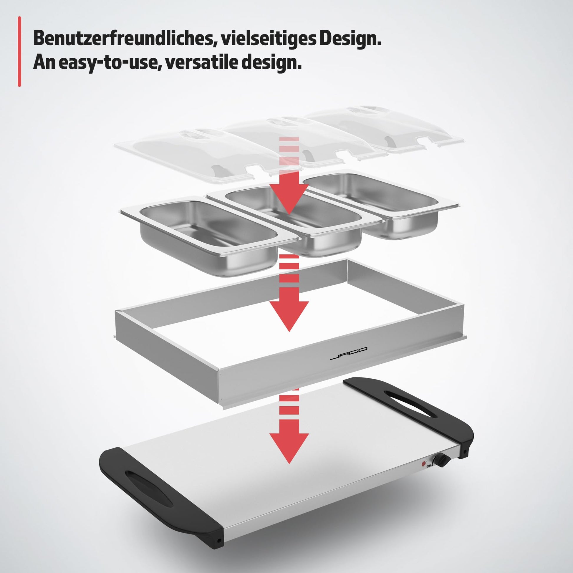 Jago® Buffet warmer - electric, with hot plate function, temperature control, stainless steel - food warmer, dish warmer, warming plate, warming container.