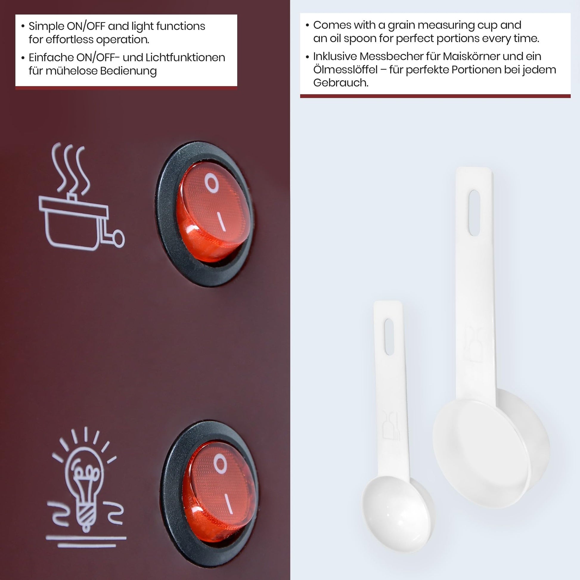 "⭐⭐⭐⭐⭐ WITH ACCESSORIES: The professional popcorn machine comes with a measuring cup and an oil measuring spoon"