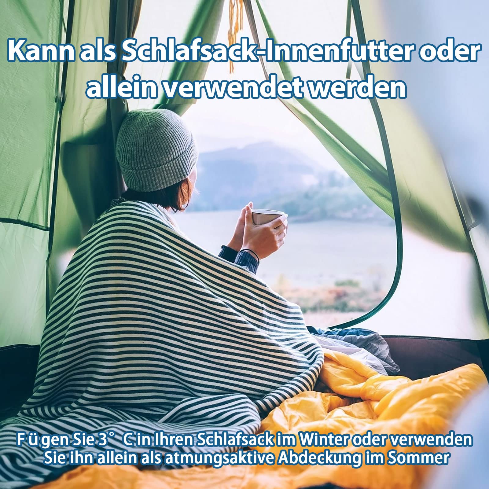 "Carry it with you - The sleeping bag measures 220 x 90 cm and has a compact size of only 20 x 10 cm. With an ultralight weight of 540 g, it can be easily stored in a backpack and taken on the go. Made of 100% ultra-thin fibers, the sleeping bag is not only durable and tear-resistant, but also highly breathable and skin-friendly. It is ideal for people with sensitive skin and is an essential summer sleeping bag for you.