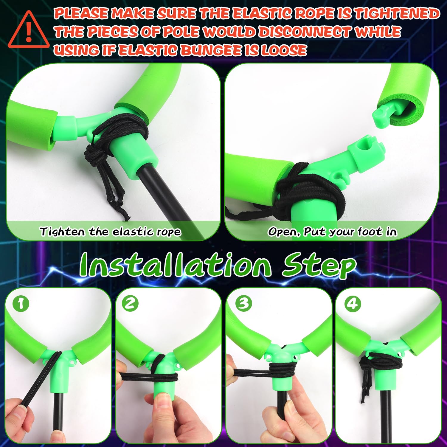 ELASTIC BUNGEE SHORTENING - We connect the rod pieces with elastic bungee. PLEASE ENSURE THAT THE ELASTIC ROPE IS TIGHTENED. The rod pieces would come loose during use if the elastic bungee is loose. Made of high-quality ECO material, safe and sturdy. Thicker foam is wrapped around the ankle ring. No hard parts, do not hurt the children's feet at all.