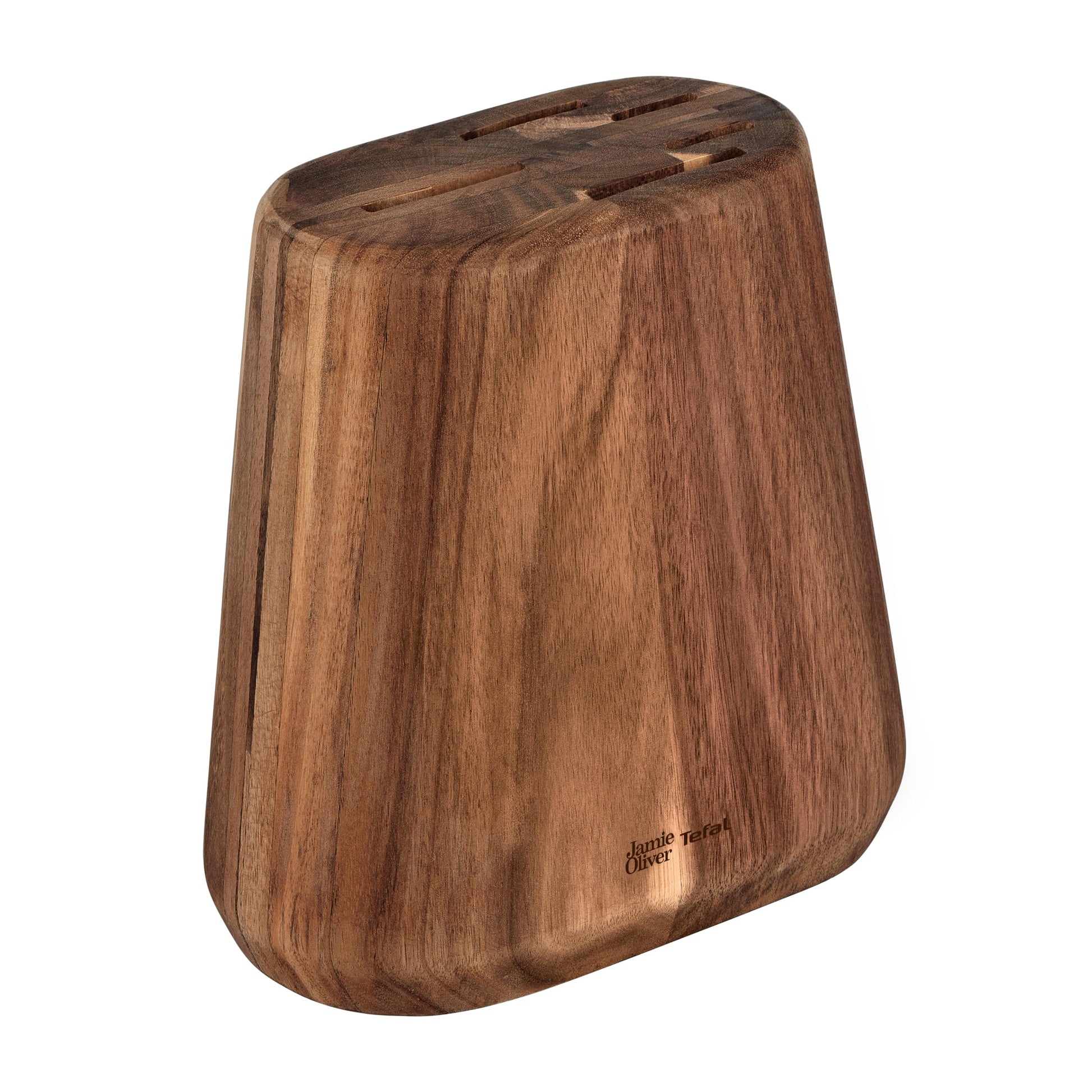 Jamie Oliver by Tefal 5-piece kitchen knife set + block, chef/santoku/bread/utility/paring knives, ice-hardened, German stainless steel blades, acacia wood block, Brown, K267S556