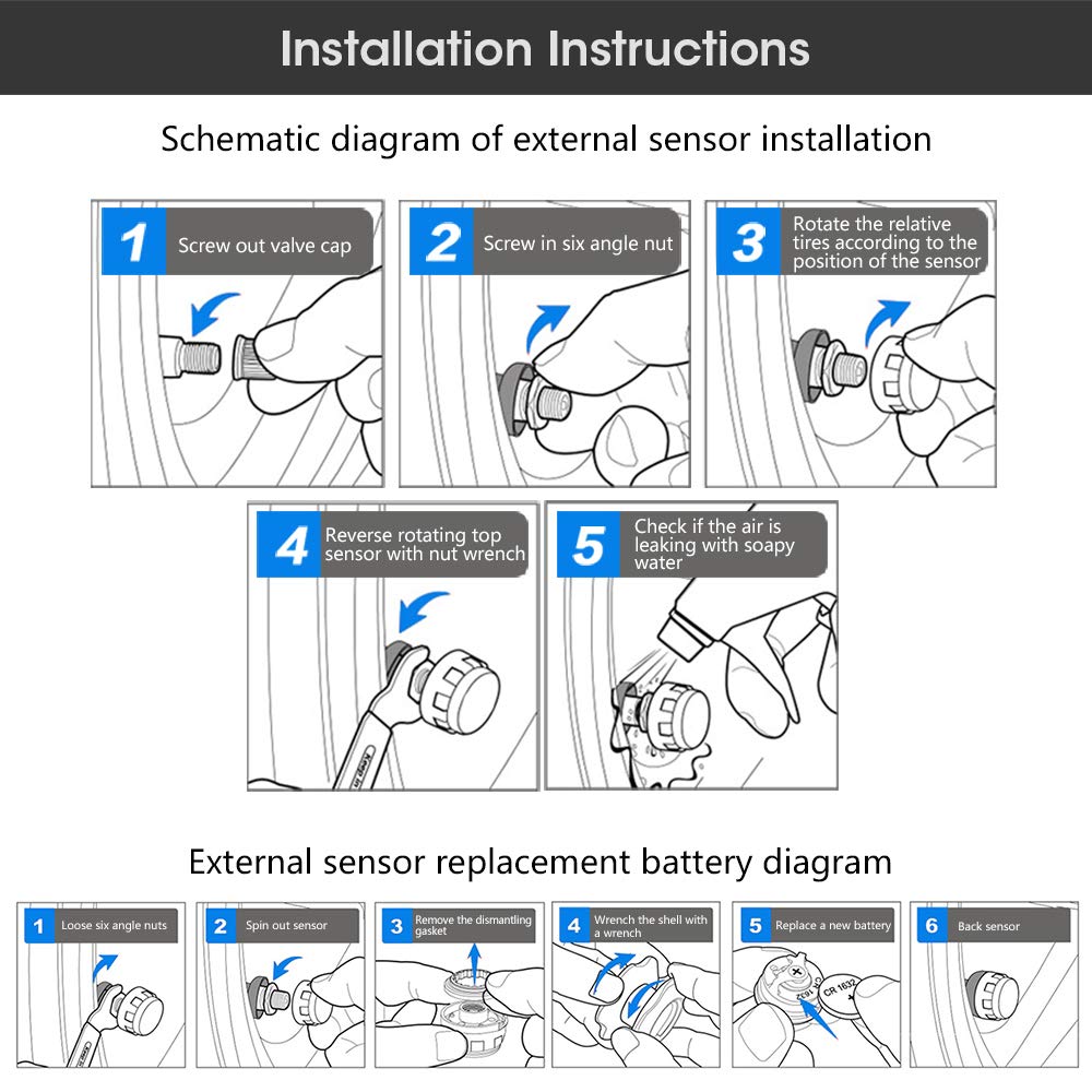 ["Monitors tire pressure dynamically. This motorcycle TPMS tire pressure monitoring system can simultaneously display tire pressure and tire temperature for the sake of driving safety. Updates in 3 seconds, displaying abnormal, visual, and audible warnings synchronously, improving fuel efficiency, extending tire life, and ensuring driving safety.","Real-time monitoring and high accuracy Motorcycle TPMS tire pressure monitoring system real-time monitoring of temperature and pressure with high accuracy and strong inference. Specifically designed for use on motorcycle tires with 2 sensors. Real-time monitoring of tire pressure, temperature, and time. If needed, two pressure units \"PSI, BAR\" and two temperature units \"℃, ℉\" can be switched.","7 Alarm modes Our TPMS with air leak alarm, low pressure alarm, high pressure alarm, high temperature alarm, low battery sensor alarm, low signal alarm, low receiver battery alarm as well as energy saving, reducing tire breaks, protecting the tires and drivers from possible hazards.","Waterproof and theft-proof The two sensors are waterproof and dustproof. The additional anti-theft nut securely connects the two sensors to your tires. Suitable for all kinds of weather, such as sunny, rainy, snowy, cloudy, rough days.","Durable and powerful battery Built-in high temperature resistant, explosion-proof lithium battery, rapid charging, long-lasting power supply, and new magnetic charging technology instead of cables."]