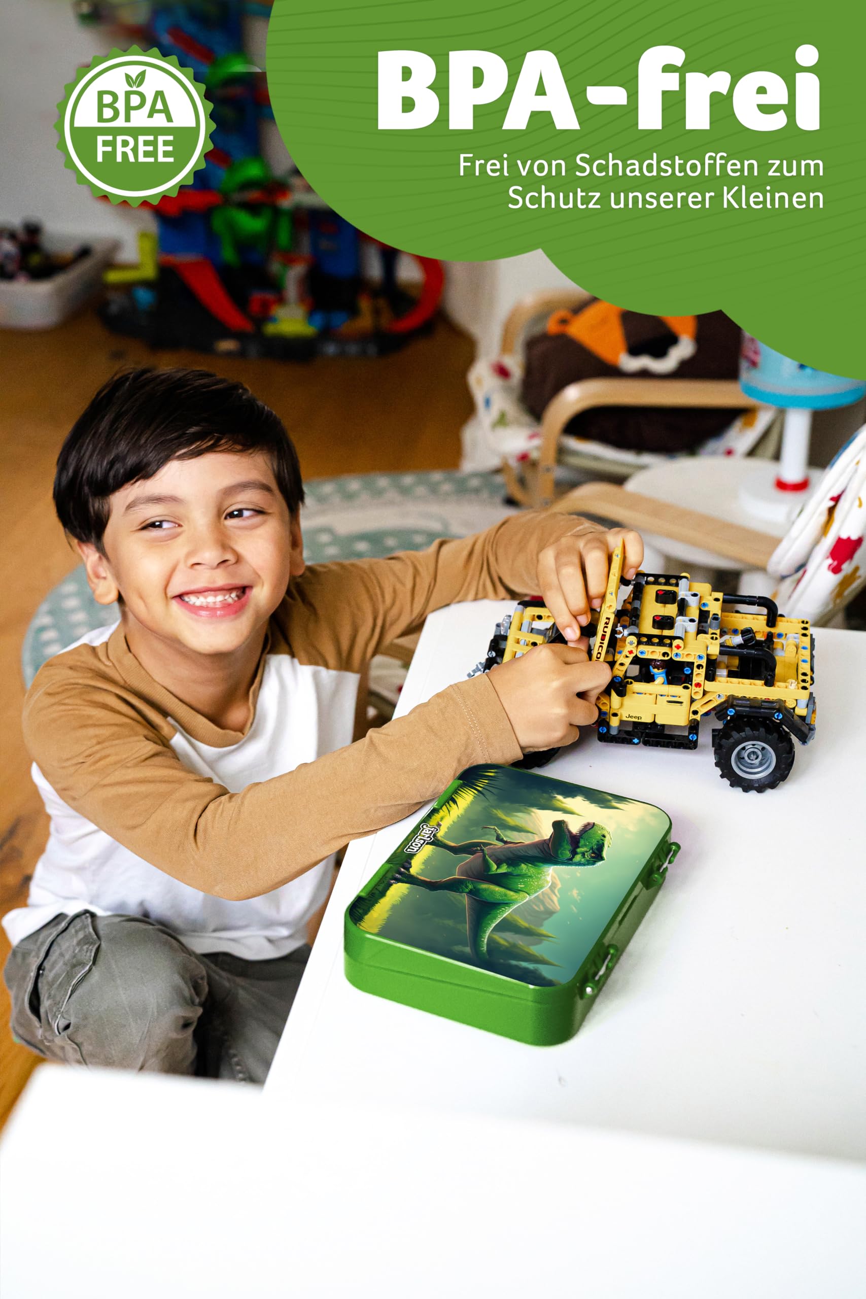 Jarlson® kids' lunch box with compartments - TONI lunchbox - leak-proof bento box for kindergarten and school - for girls and boys | snack box (dinosaur)