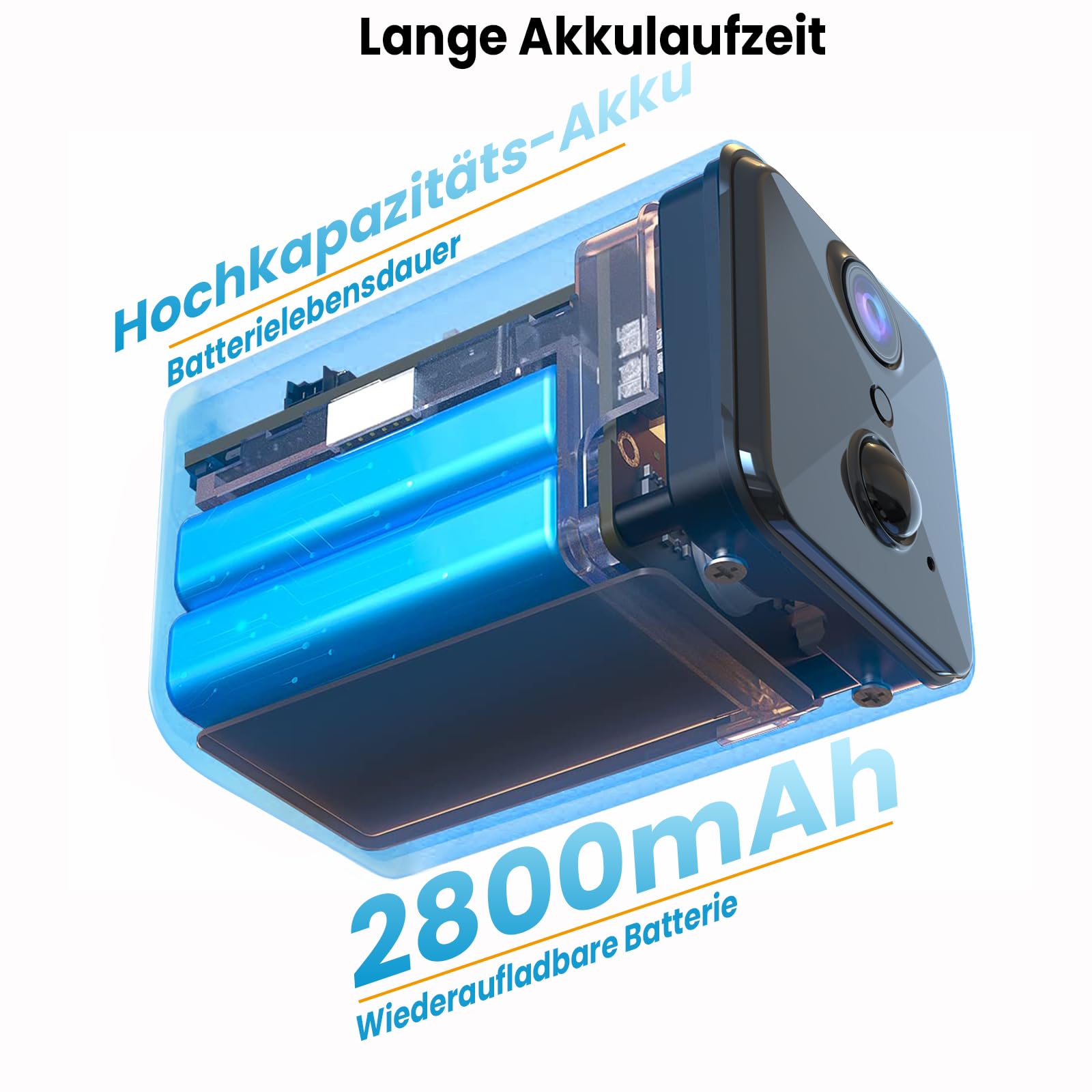 "【Built-in & Long Standby Battery】2800mAh wifi surveillance camera, Technical design with low power consumption, which can continuously record for 24 hours after charging. The camera can record for over 60 days at low sensitivity settings. It saves power by recording when someone comes, and standby when no one comes.