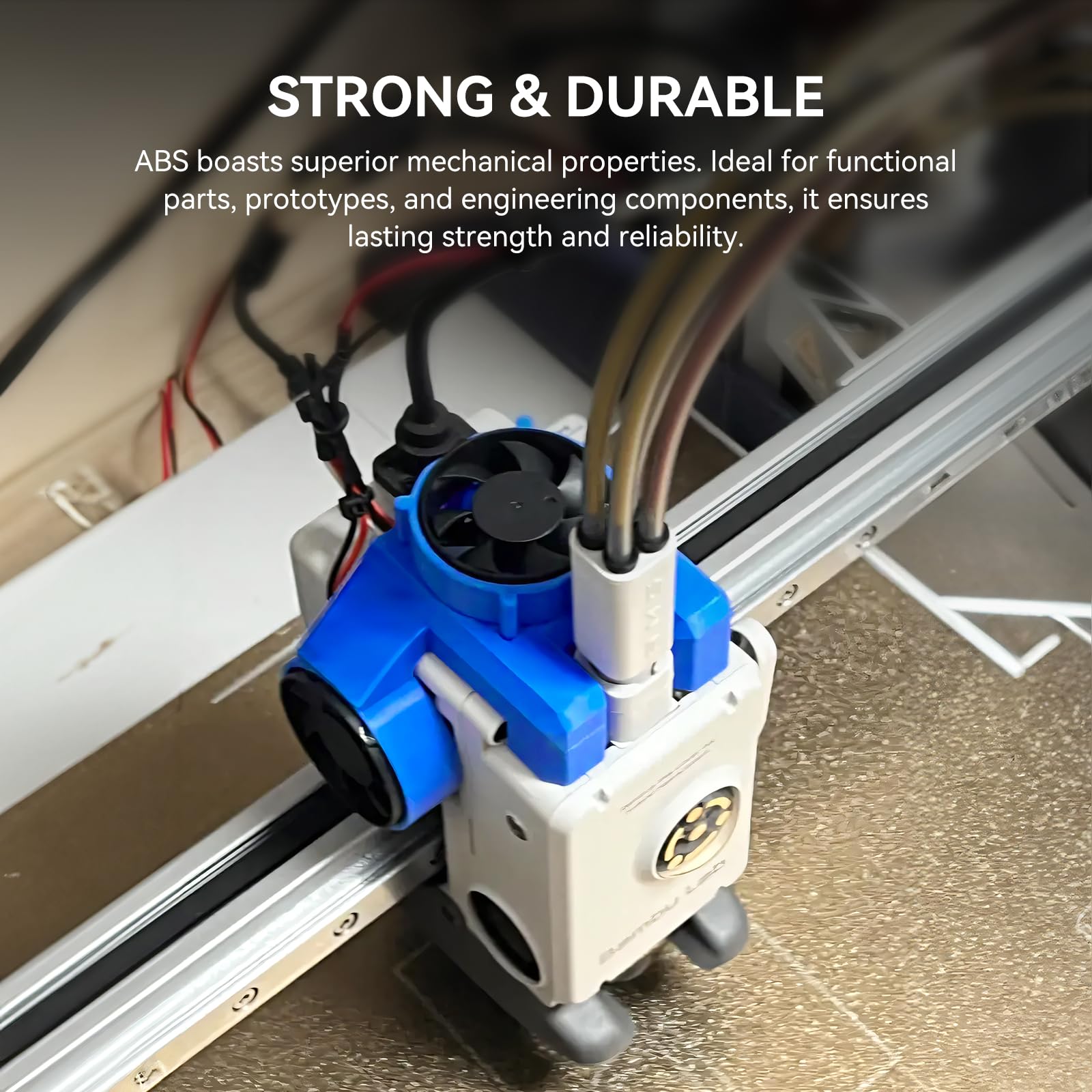 ["ANTI-WARPING JAYO ABS FILAMENT: Upgrade with Anti-Warping formula, exclusive filler technology, linear shrinkage reduced to 0.4%-0.9% (industry average 1.2%), printing (automotive parts/helmet models) without frequent readjustments, bed adhesion increased by 50%",