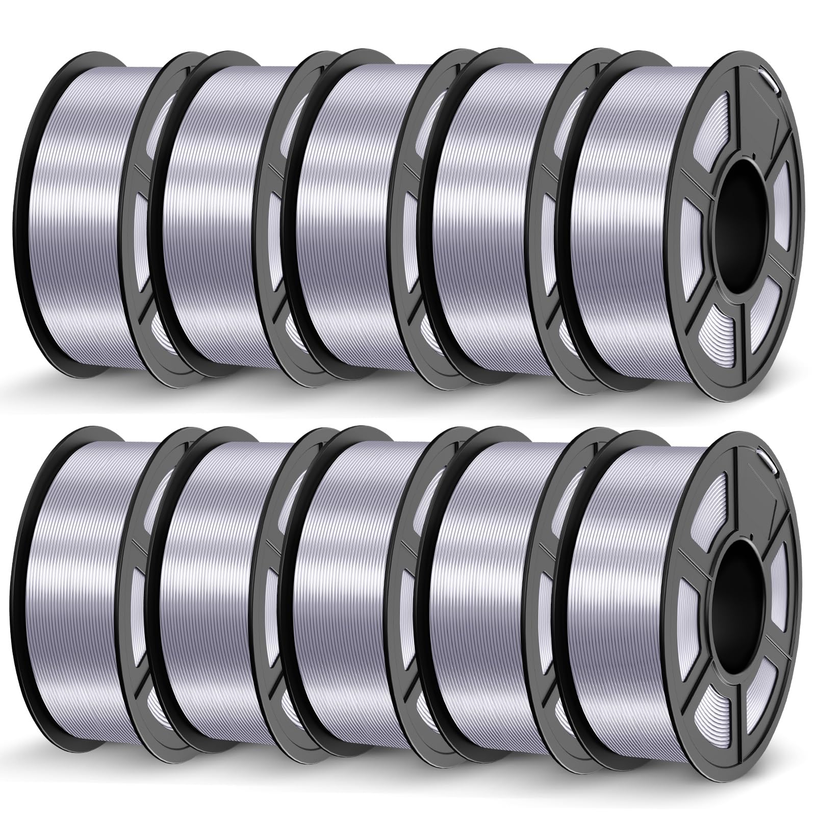 JAYO Silk PLA+ Filament 1.75mm 1.1kg*10 Silver, Neatly Wound, Dimensional Accuracy +/- 0.02MM, 3D Printer Filament
