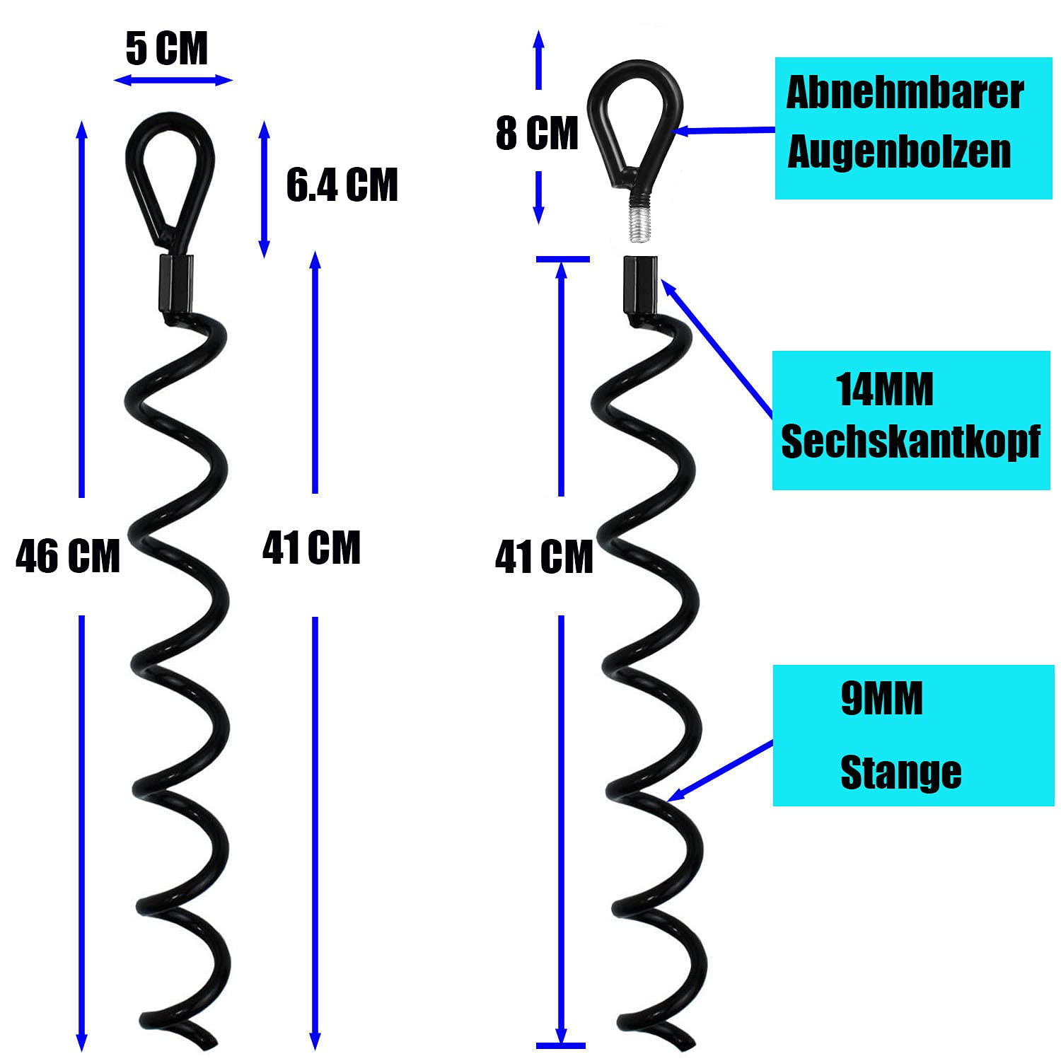 "【High-performance Ground Anchors】 100% solid steel material with spray powder for the black coating. It is rust-free and without paint drops. It can be used repeatedly, which are really useful and durable anchors for you.",