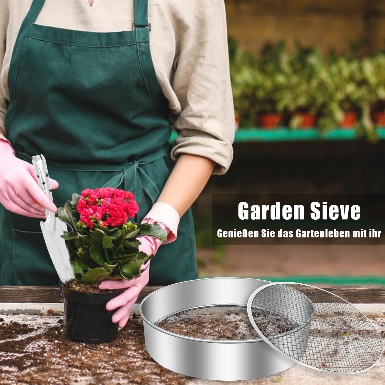 "Practical and space-saving: You can use it as a soil sieve, stone sieve, and roll sieve - a flexible sieve as needed. This 5-in-1 garden sieve can be stacked and stored in a space-saving way.",