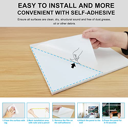 ["OPTIMAL SOLUTION FOR ACOUSTIC TREATMENT - Our acoustic wall panels feature excellent sound absorption, which can easily and effectively reduce reverberation and echo, and decrease noise in various spaces. Effectively enhance the sound environment and quality of the room, providing an extremely quiet and comfortable experience.", "FASHION DECORATION - The artistic acoustic panels can decorate our walls very well, bringing a pleasant visual effect and improving the soundproofing effect of the room. Ideal for living rooms, home theaters, personal studios, and more.", "HIGH QUALITY - Acoustic panels are made of 100% polyester, odorless, and fire-resistant. They are superior to sound-absorbing foam in every way. They can be used anywhere without concern and ensure colorful and long-lasting soundproofing for your home.", "EASY TO INSTALL - Acoustic panels with self-adhesive, easy to install, you can do it yourself. Total panel size: 72x48 inches / 180x120cm, specific small panel size: 24x24 inches / 60x60cm, thickness: 0.4 inches / 1 cm.", "VERSATILE USE - Acoustic panels are excellent materials for noise absorption. Art panels can be used to reduce noise in your home or prevent noise from entering a building from outside. Soundproofing panels can help clarify speech or music in a classroom or theater, or make an office quieter to promote concentration."]