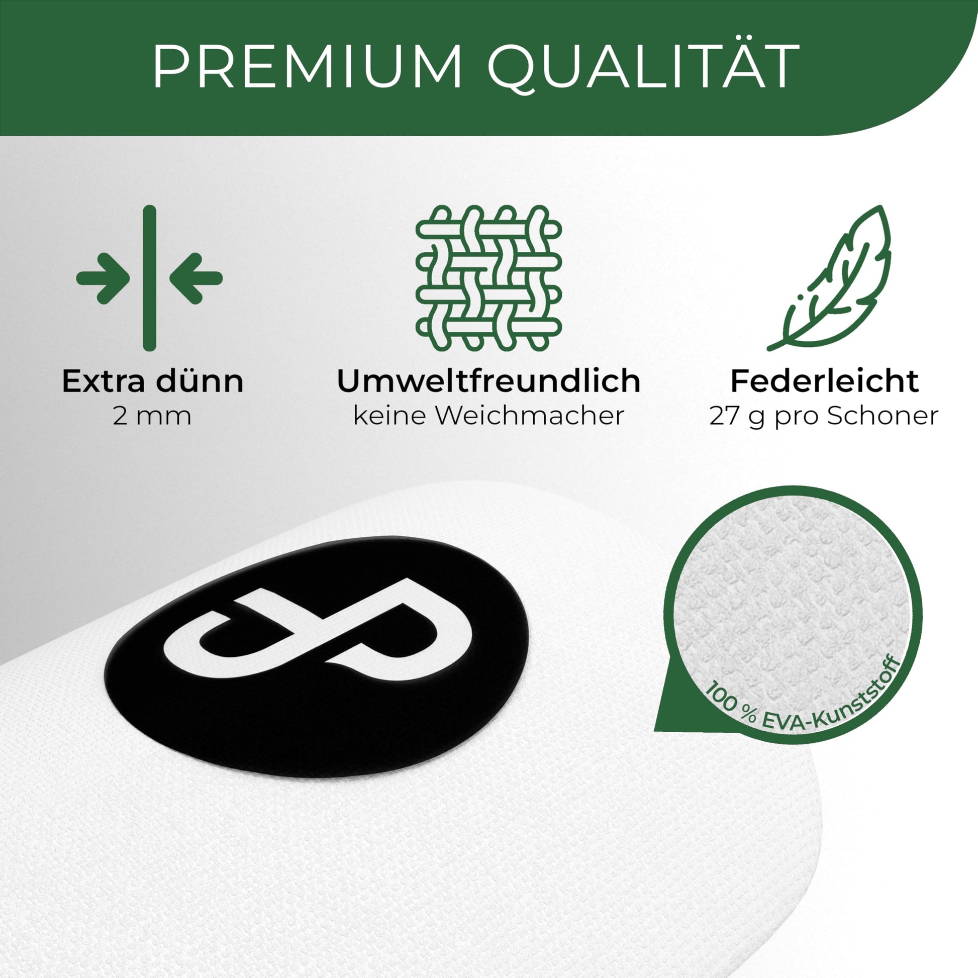"⭐ High-Quality Material: The mini shin pads are made of 100% EVA plastic. This odorless and environmentally friendly material contains no plasticizers or other hazardous substances. Thanks to its special surface, the shin guards do not stick directly to the skin, are barely noticeable, yet non-slip",